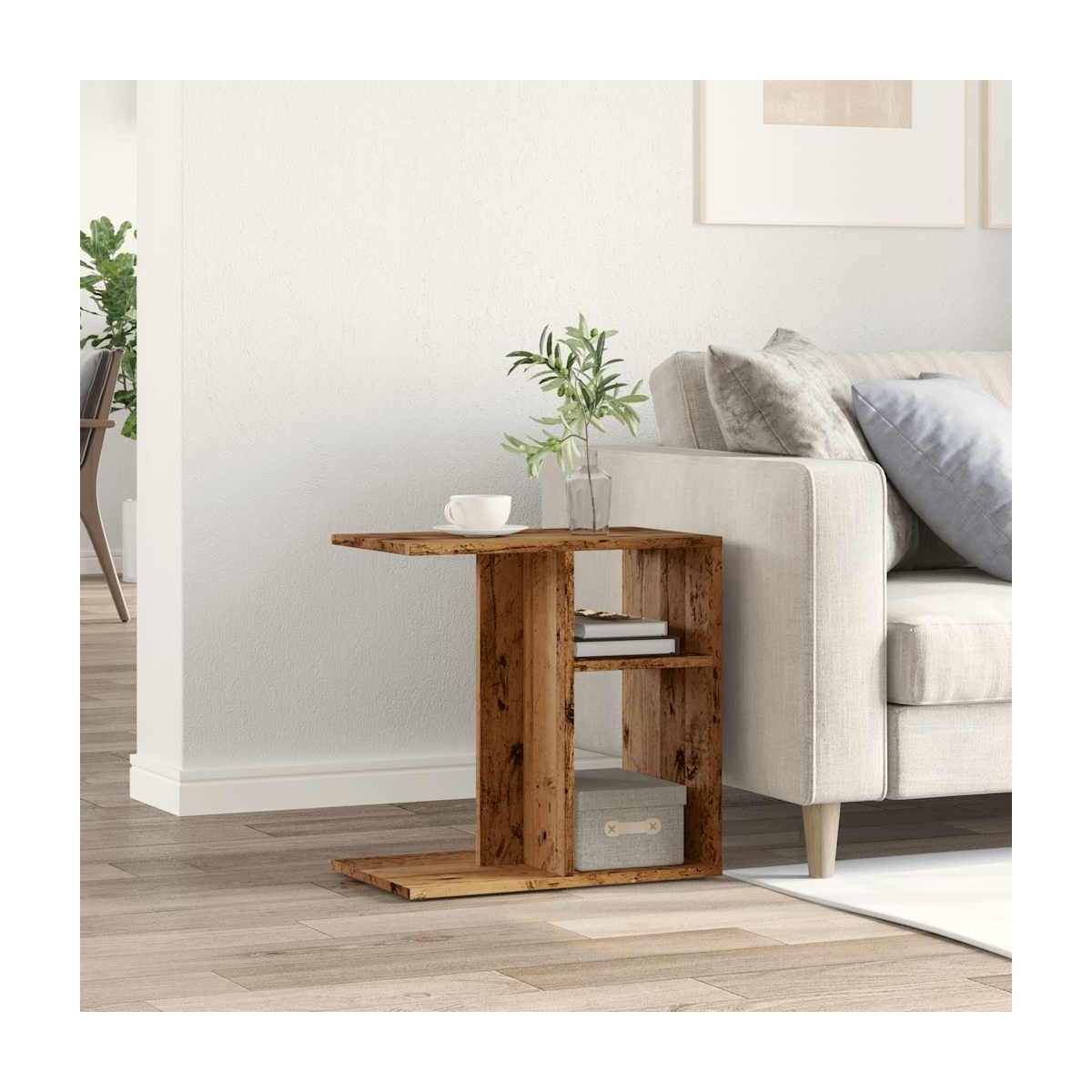 Transforme su espacio vital con esta elegante y funcional mesa auxiliar, diseñada para adaptarse a sus necesidades y realzar la estética general de su hogar. Material estable y duradero: La madera de ingeniería es un material duradero y estable con una superficie lisa que es resistente a la humedad, la deformación y la rotura, lo que la convierte en una opción fiable para una variedad de proyectos.Amplio espacio de almacenamiento: La mesa auxiliar ofrece un amplio espacio de almacenamiento con sus estantes abiertos, lo que le permite organizar y exponer artículos como libros, revistas u objetos decorativos, manteniendo su sala de estar libre de desorden.Uso versátil: Esta mesa sirve tanto de cómoda mesita auxiliar como de elegante expositor. Puede colocar fácilmente una taza de café al alcance de la mano en el tablero de la mesa, o utilizarla para exponer fotos y colecciones personales.Atractivo moderno: Esta elegante mesa auxiliar, de líneas limpias y diseño minimalista, se adapta perfectamente a cualquier espacio gracias a su exclusiva estructura esquinera. Su aspecto contemporáneo eleva sin esfuerzo la decoración de su hogar, añadiendo un toque atemporal y elegante al ambiente general.Fácil de mantener: Gracias a su superficie lisa, la mesa se limpia fácilmente con un paño húmedo y requiere menos mantenimiento. Advertencia:Para evitar que vuelque, este producto debe usarse con el dispositivo de fijación a la pared suministrado.