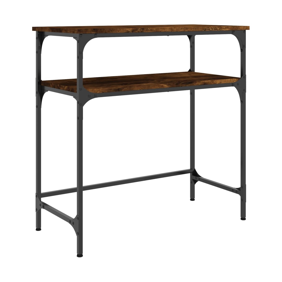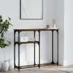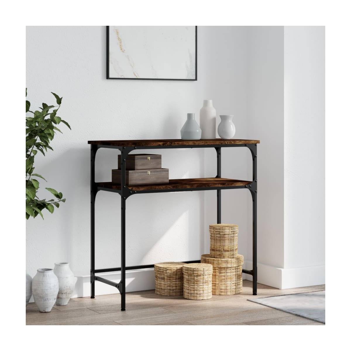 Añade un toque de elegancia a la entrada, el salón o el pasillo con esta elegante mesa consola. Material duradero: La madera de ingeniería tiene una calidad excepcional, con una superficie lisa, y también se caracteriza por su fuerza, estabilidad y resistencia a la humedad. Hecha de madera de ingeniería, la mesita de sofá es fácil de limpiar.Amplio espacio de almacenaje: La mesa de recibidor ofrece un amplio espacio de almacenaje para mantener bien organizados y al alcance revistas, libros, artículos decorativos y otros objetos de uso diario.Patas ajustables: Cuatro patas ajustables con almohadillas de plástico mantienen la mesa del pasillo equilibrada en terrenos irregulares y aumentan la estabilidad.Estructura metálica: La estructura metálica añade un estilo industrial a la casa, además de garantizar su durabilidad y estabilidad. Advertencia:Para evitar que vuelque, este producto debe usarse con el dispositivo de fijación a la pared incluido.