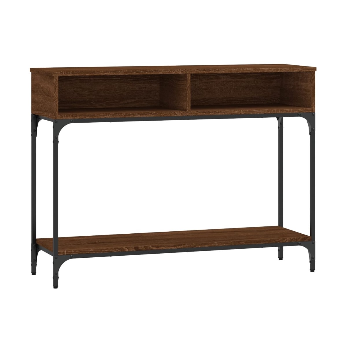 Añade un toque de elegancia a la entrada, el salón o el pasillo con esta elegante mesa consola. Material duradero: La mesa de recibidor está hecha de madera de ingeniería. La madera de ingeniería tiene una calidad excepcional, con una superficie lisa, y también es fuerte, estable y resistente a la humedad.Estructura robusta: La estructura de metal garantiza su solidez y estabilidad.Amplio espacio de almacenamiento: La mesita con compartimentos y estante ofrece un amplio espacio de almacenamiento para mantener tus objetos esenciales diarios bien organizados y al alcance.Superficie resistente: La robusta superficie de la mesa de pasillo es perfecta para colocar marcos de fotos, plantas y otros objetos decorativos. Advertencia:Para evitar que vuelque, este producto debe usarse con el dispositivo de fijación a la pared incluido.