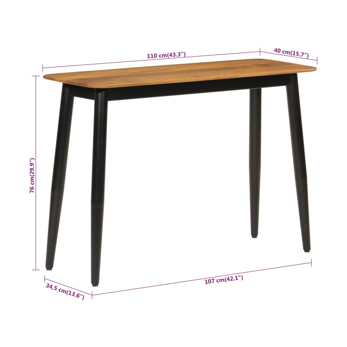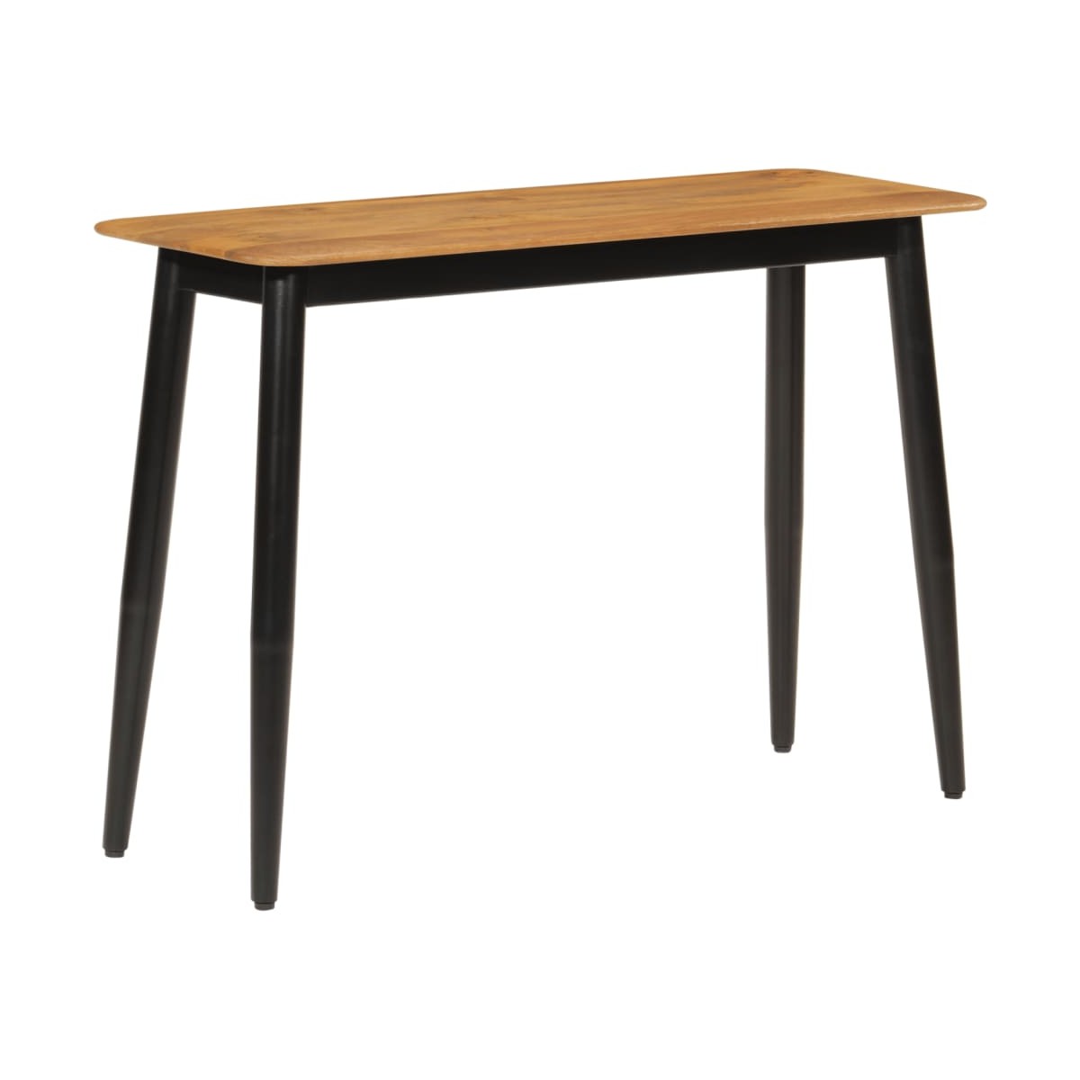 Añade un toque de elegancia a la entrada, el salón o el pasillo con esta elegante mesa consola. Madera maciza de mango: La madera maciza de mango es una madera dura, tropical y resistente, que sirve para hacer muebles robustos. Las bonitas vetas de la madera hacen que cada mueble sea ligeramente diferente al resto.Superficie resistente: La superficie maciza brinda una superficie estable y segura donde colocar bebidas, fruteros, jarrones y otros artículos decorativos.Patas robustas y estables: La mesa para pasillo cuenta con cuatro patas de hierro con recubrimiento en polvo, lo que mejora su estabilidad y solidez, además de dar un estilo industrial a la casa. Información útil:Cada artículo es único, con variaciones de color y veta. La entrega es aleatoria garantizando la exclusividad y la individualidad del producto. Advertencia:Para evitar que vuelque, este producto debe usarse con el dispositivo de fijación a la pared incluido.