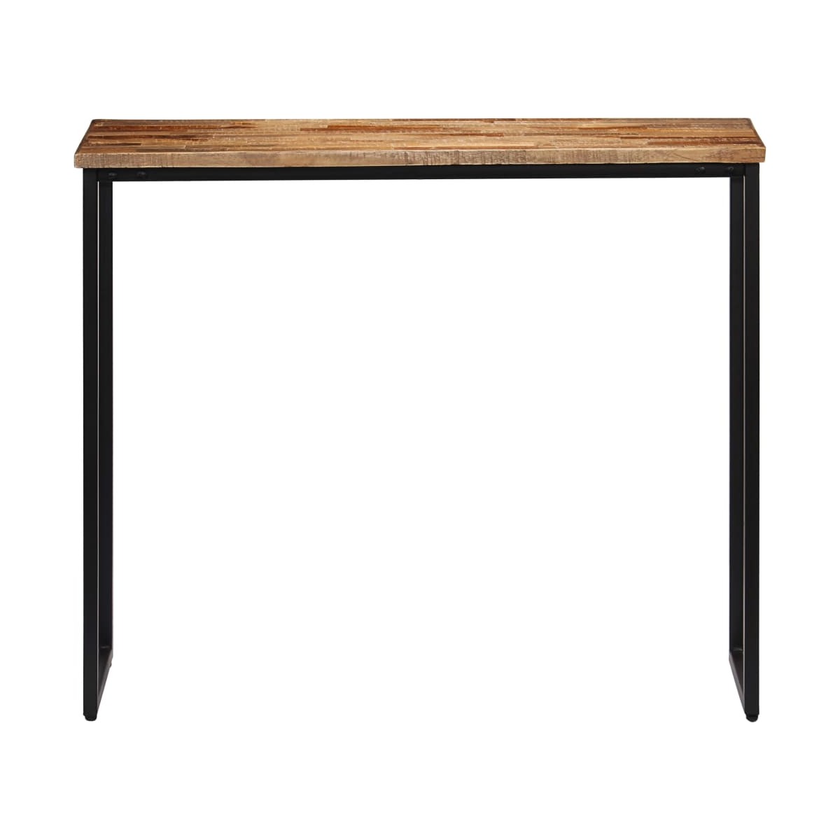 Esta mesa consola será un aporte atemporal para la decoración de su salón. La mesa consola está hecha de madera de teca reciclada, que es maciza, estable, duradera y bonita. La robusta superficie es ideal para colocar diversos artículos como bebidas, jarrones, cestas de frutas u adornos. Las patas de acero robusto aumentan la robustez de la mesa. Se tiene mucho cuidado en cada paso del proceso de producción, ya sea la recombinación, el pulido o el lacado. El montaje es fácil. Nota importante: Los colores y las vetas de la madera pueden variar de una pieza a otra, haciendo que cada pieza sea única y ligeramente diferente del resto; la entrega es aleatoria.