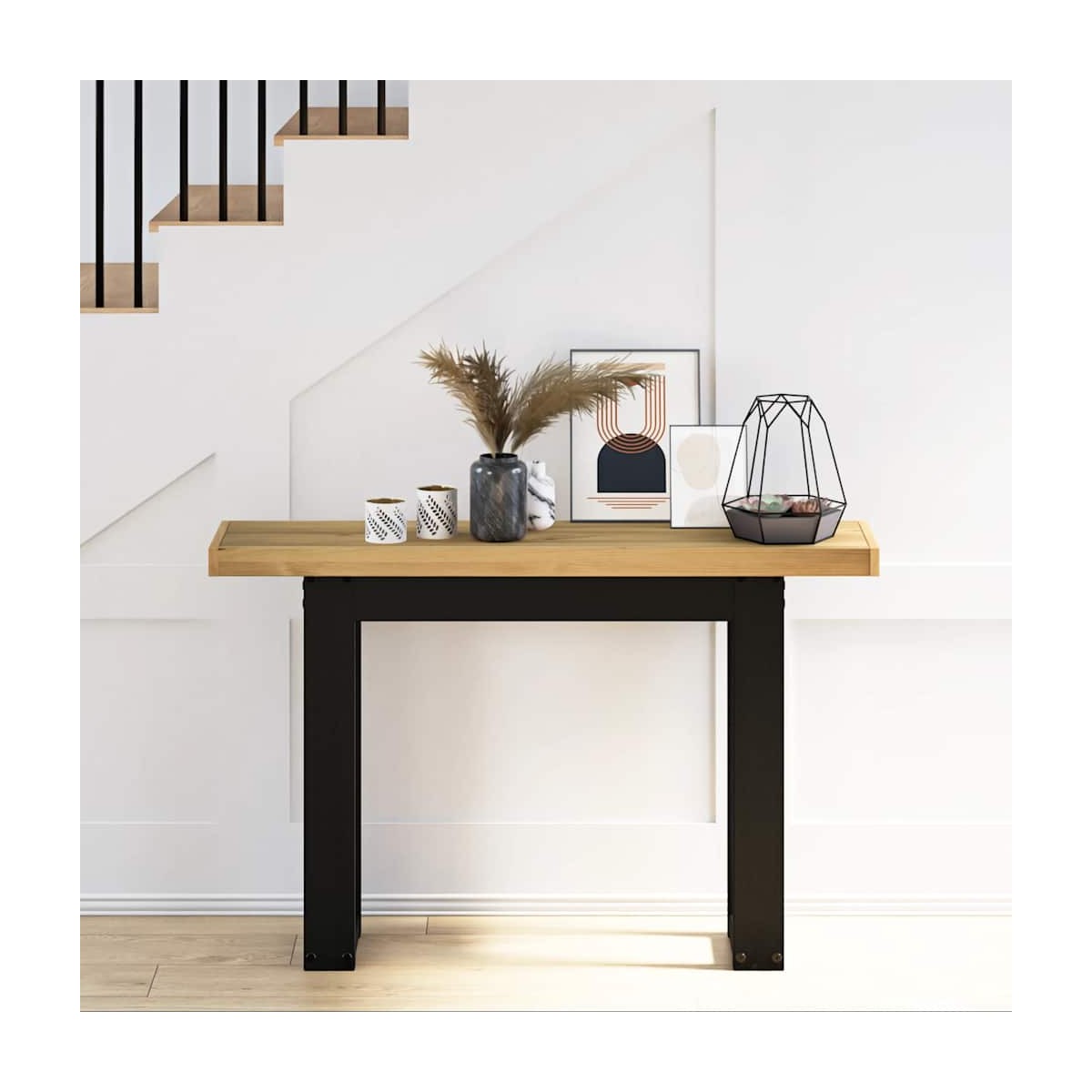Mejore su espacio habitable con la mesa consola de madera de pino macizo, diseñada para combinar atractivo auténtico y practicidad. Material estable y duradero: La madera de pino maciza es conocida por su resistencia y durabilidad.Tablero práctico: el tablero resistente de la mesa de entrada es perfecto para colocar marcos de fotos, bebidas, revistas y otros elementos decorativos.Patas de mesa resistentes: las patas de madera en forma de U no solo ofrecen una estética rústica sino que también brindan soporte y estabilidad excepcionales a la mesa.Uso versátil: la mesa de recibidor ofrece una funcionalidad práctica, ya sea como organizador de entrada, superficie de exposición para la decoración o espacio de trabajo en un pasillo o sala de estar. Su estructura robusta y su diseño rústico la hacen perfecta para diferentes espacios, combinando practicidad con encanto natural.Fácil mantenimiento: gacias a su superficie lisa, la mesa de entrada es fácil de limpiar con un paño húmedo y requiere menos mantenimiento.