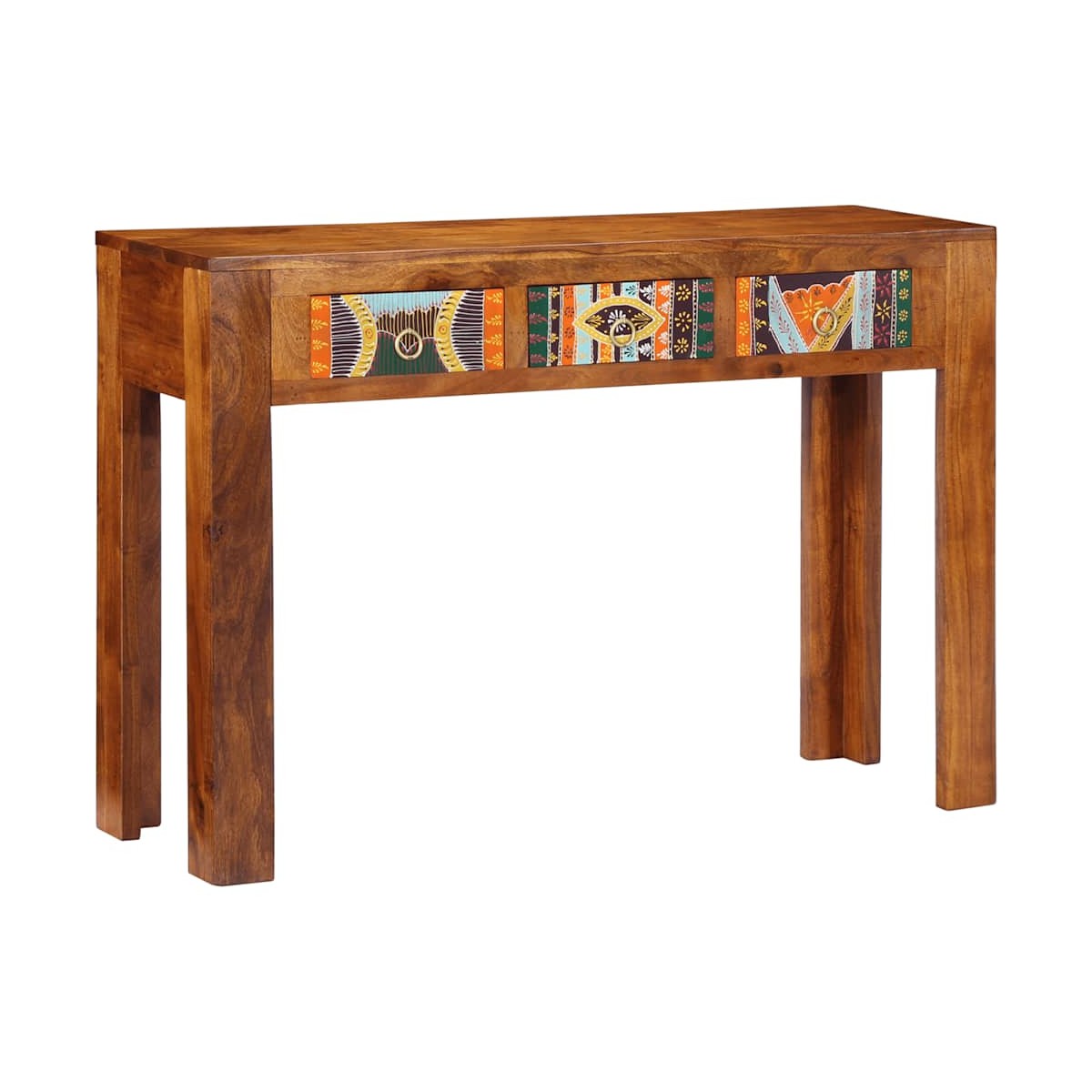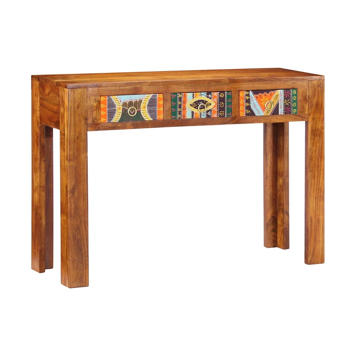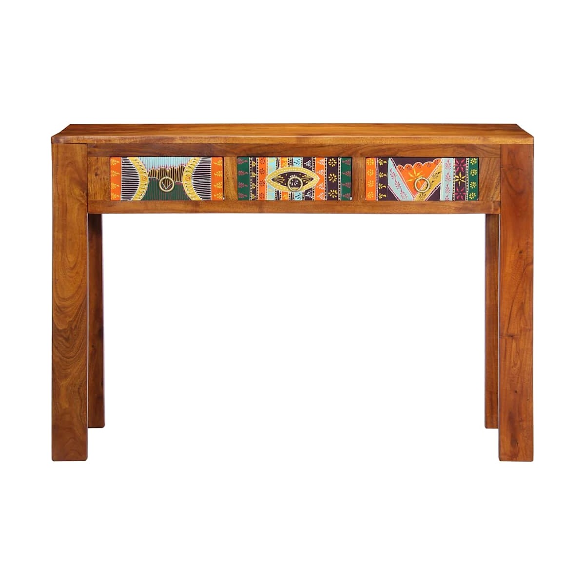 Esta mesa consola ofrece un amplio espacio de almacenamiento a la vez que complementa la decoración de su hogar. Es perfecta para el salón, el dormitorio y los pasillos. La madera maciza de acacia es un bonito material natural. La madera de acacia es una madera dura tropical, densa, robusta y duradera. El fuerte textilene también es resistente a la intemperie y fácil de limpiar.Tablero práctico: el tablero resistente de la mesa de entrada es perfecto para colocar marcos de fotos, bebidas, revistas y otros elementos decorativos.Amplio espacio de almacenamiento: esta mesa de recibidor tiene cajones y estantes para brindar espacio de almacenamiento para mantener sus revistas, libros, controles remotos y otros artículos pequeños a su alcance.Uso versátil: la mesa de recibidor ofrece una funcionalidad práctica, ya sea como organizador de entrada, superficie de exposición para la decoración o espacio de trabajo en un pasillo o sala de estar. Su estructura robusta y su diseño rústico la hacen perfecta para diferentes espacios, combinando practicidad con encanto natural.Fácil mantenimiento: gacias a su superficie lisa, la mesa de entrada es fácil de limpiar con un paño húmedo y requiere menos mantenimiento. Información útil:Cada artículo es único, con variaciones de color y veta. La entrega es aleatoria garantizando la exclusividad y la individualidad del producto.