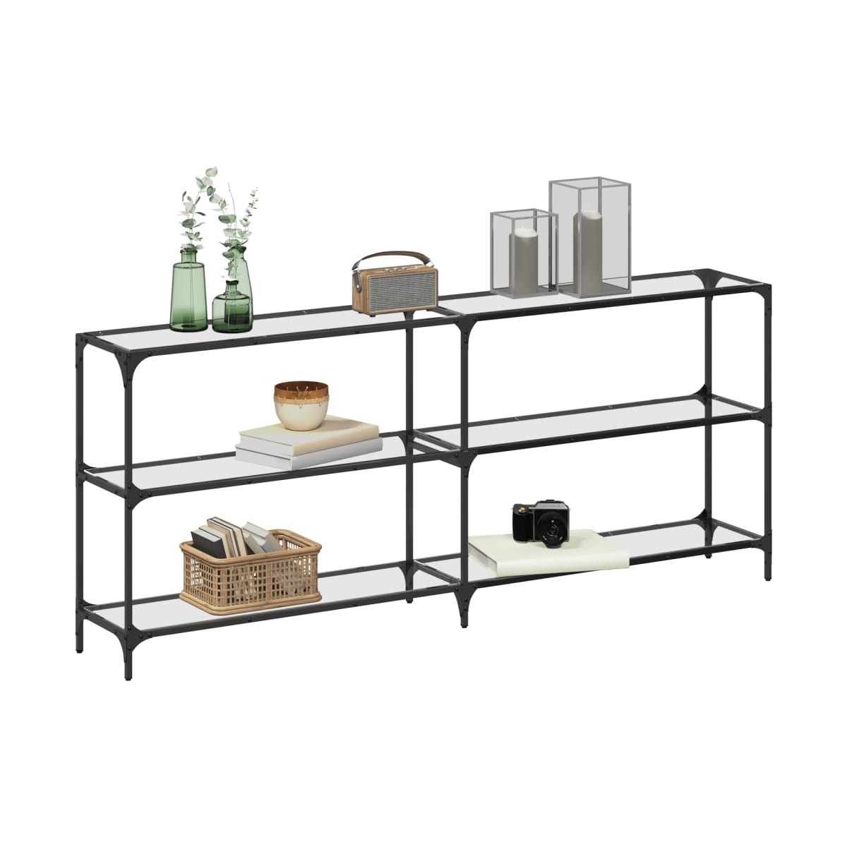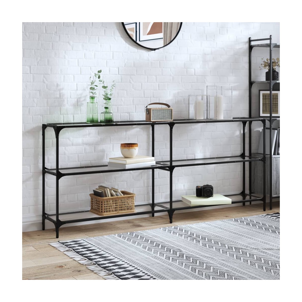 Funcional y bonita, esta mesa consola se convertirá en el centro de atención de tla estancia. Tapa de cristal: La tapa de la mesa de centro proporciona una superficie amplia y visible para colocar jarrones, plantas en macetas u otros elementos decorativos.Estructura robusta y estable: La estructura de acero inoxidable de la mesa del salón garantiza robustez y estabilidad.Fácil mantenimiento: Esta mesa de pasillo con superficie resistente a las manchas es fácil de limpiar y podrás mantener la mesa en su mejor aspecto sin esfuerzo.Diseño moderno: La mesa de pasillo tiene un diseño sencillo y moderno que complementa la decoración de cualquier habitación. Advertencia:Para evitar que vuelque, este producto debe usarse con el dispositivo de fijación a la pared suministrado.