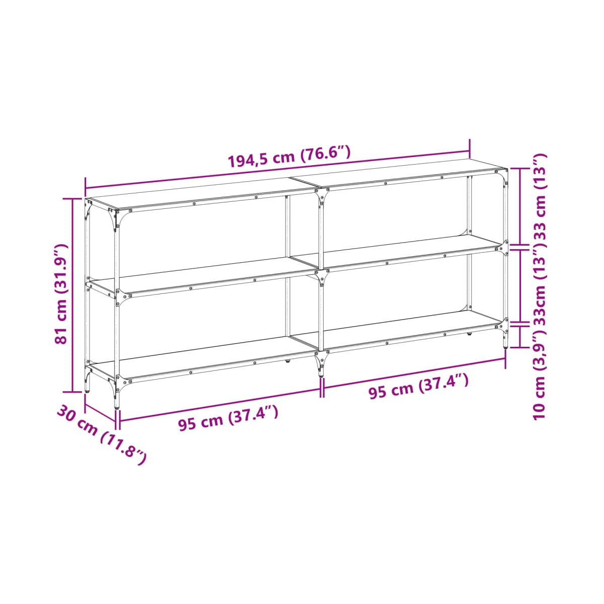 - Dimensiones: 194,5 x 30 x 81 cm (largo x ancho x alto)