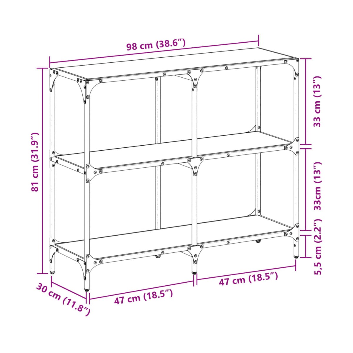 Funcional y bonita, esta mesa consola se convertirá en el centro de atención de tla estancia. Tapa de cristal: La tapa de la mesa de centro proporciona una superficie amplia y visible para colocar jarrones, plantas en macetas u otros elementos decorativos.Estructura robusta y estable: La estructura de acero inoxidable de la mesa del salón garantiza robustez y estabilidad.Fácil mantenimiento: Esta mesa de pasillo con superficie resistente a las manchas es fácil de limpiar y podrás mantener la mesa en su mejor aspecto sin esfuerzo.Diseño moderno: La mesa de pasillo tiene un diseño sencillo y moderno que complementa la decoración de cualquier habitación. Advertencia:Para evitar que vuelque, este producto debe usarse con el dispositivo de fijación a la pared suministrado.