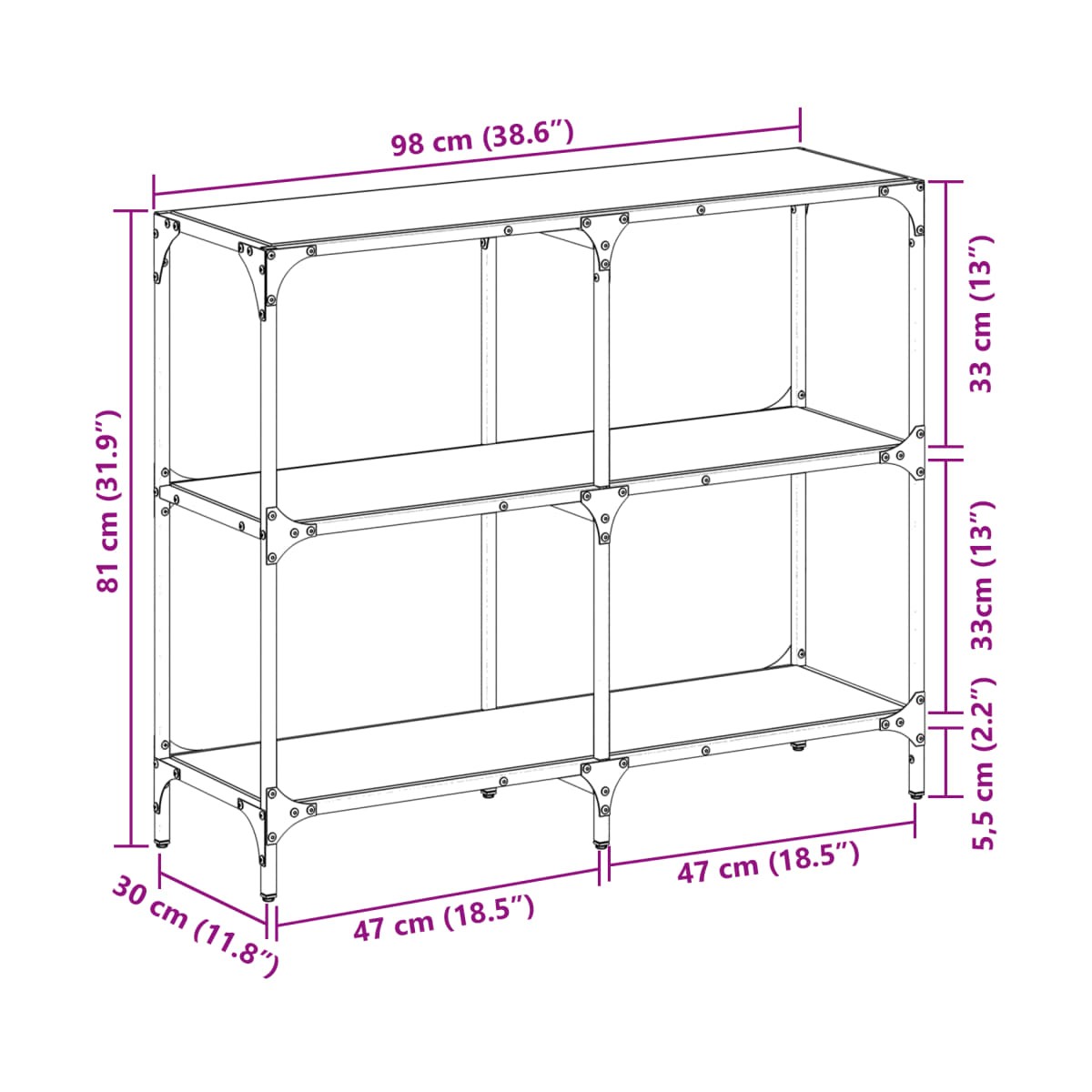 - Dimensiones: 98 x 30 x 81 cm (largo x ancho x alto)