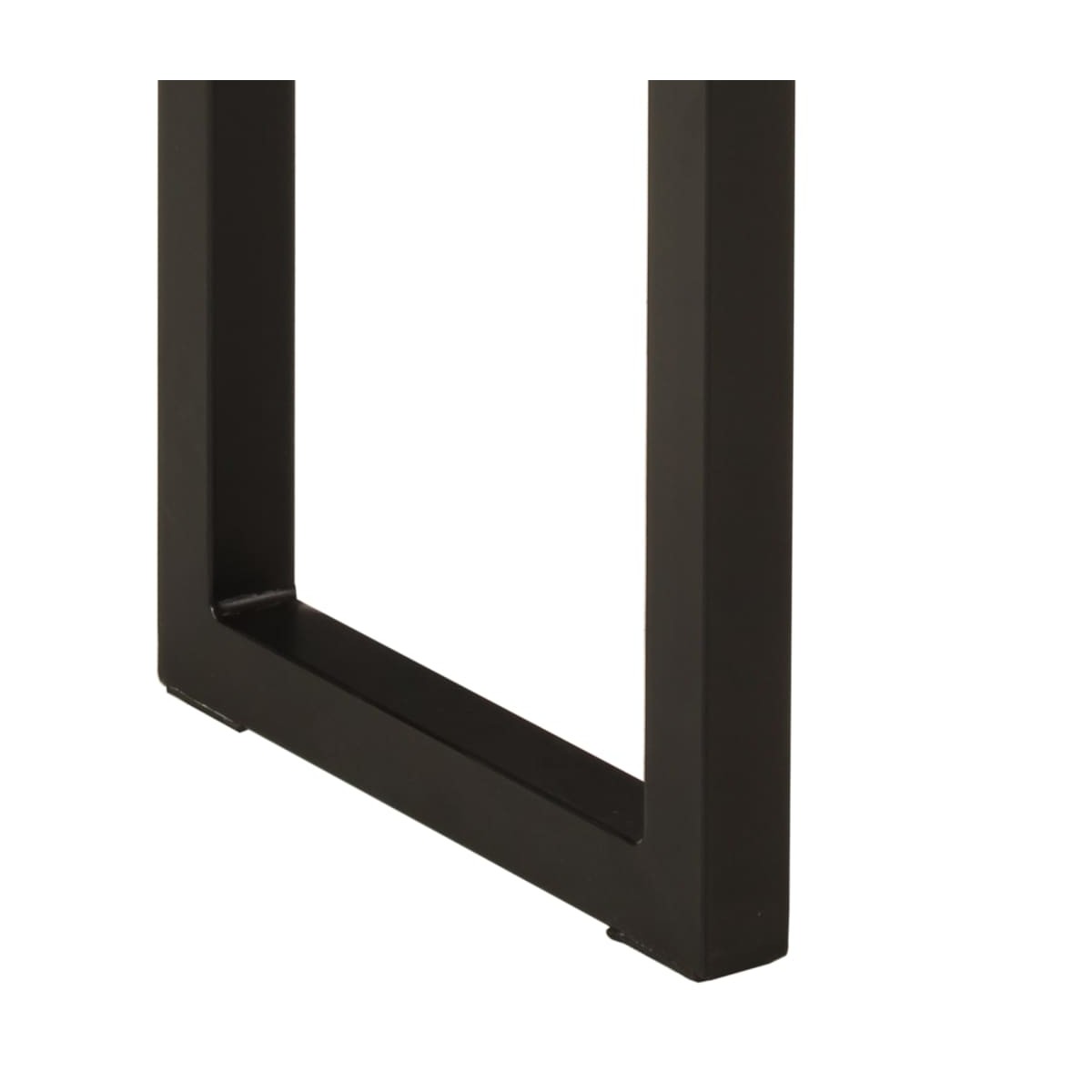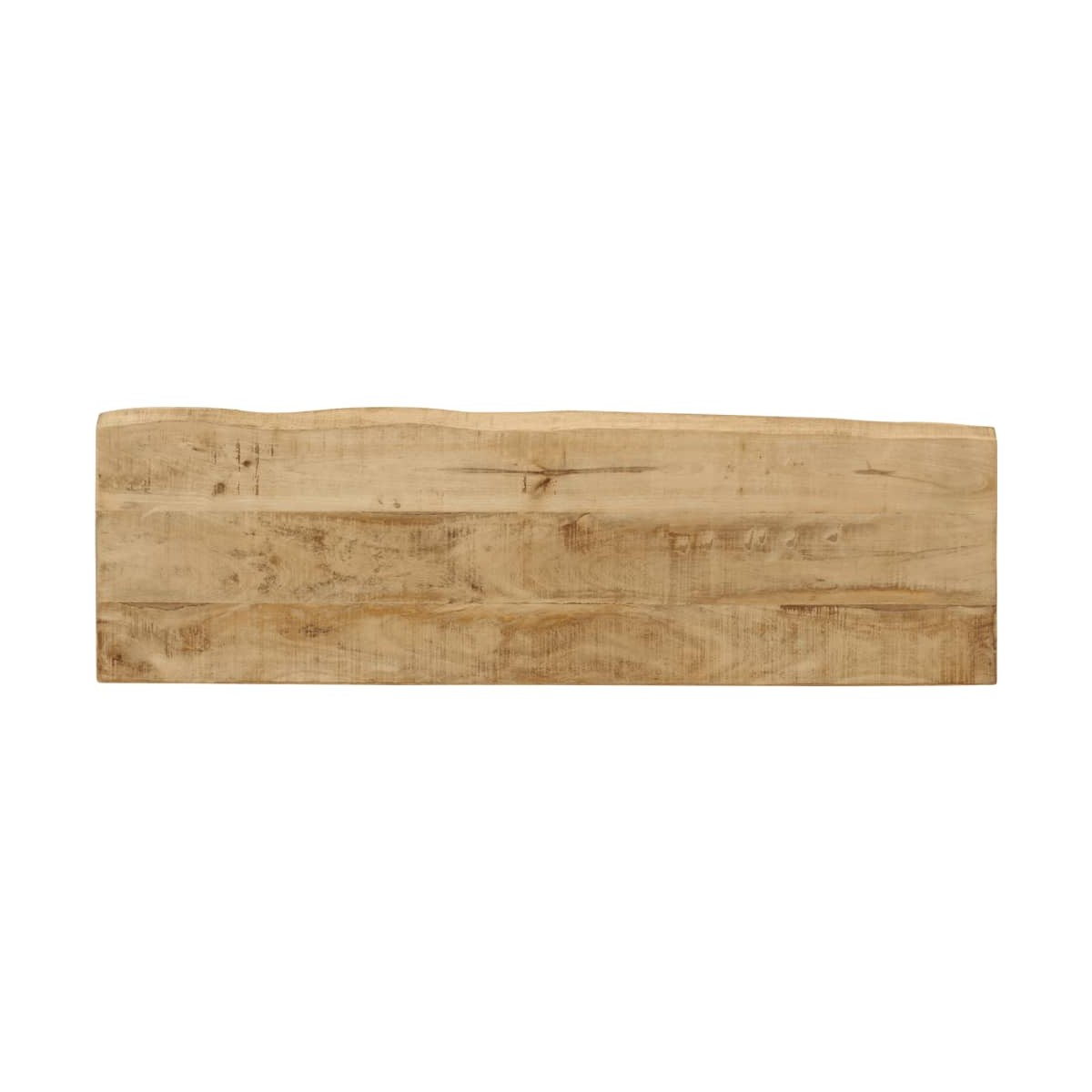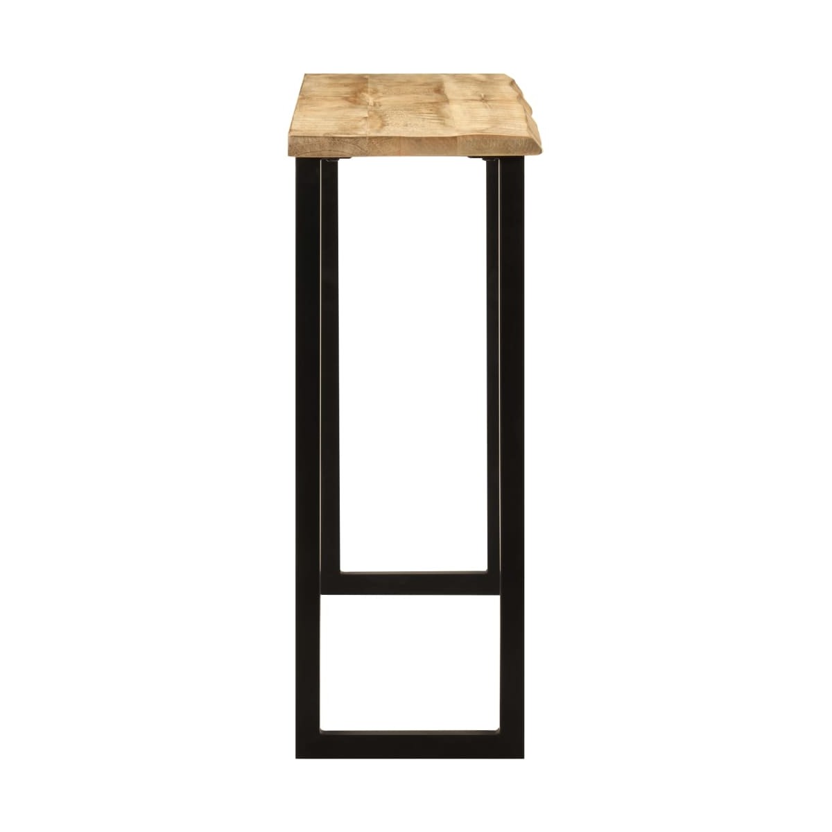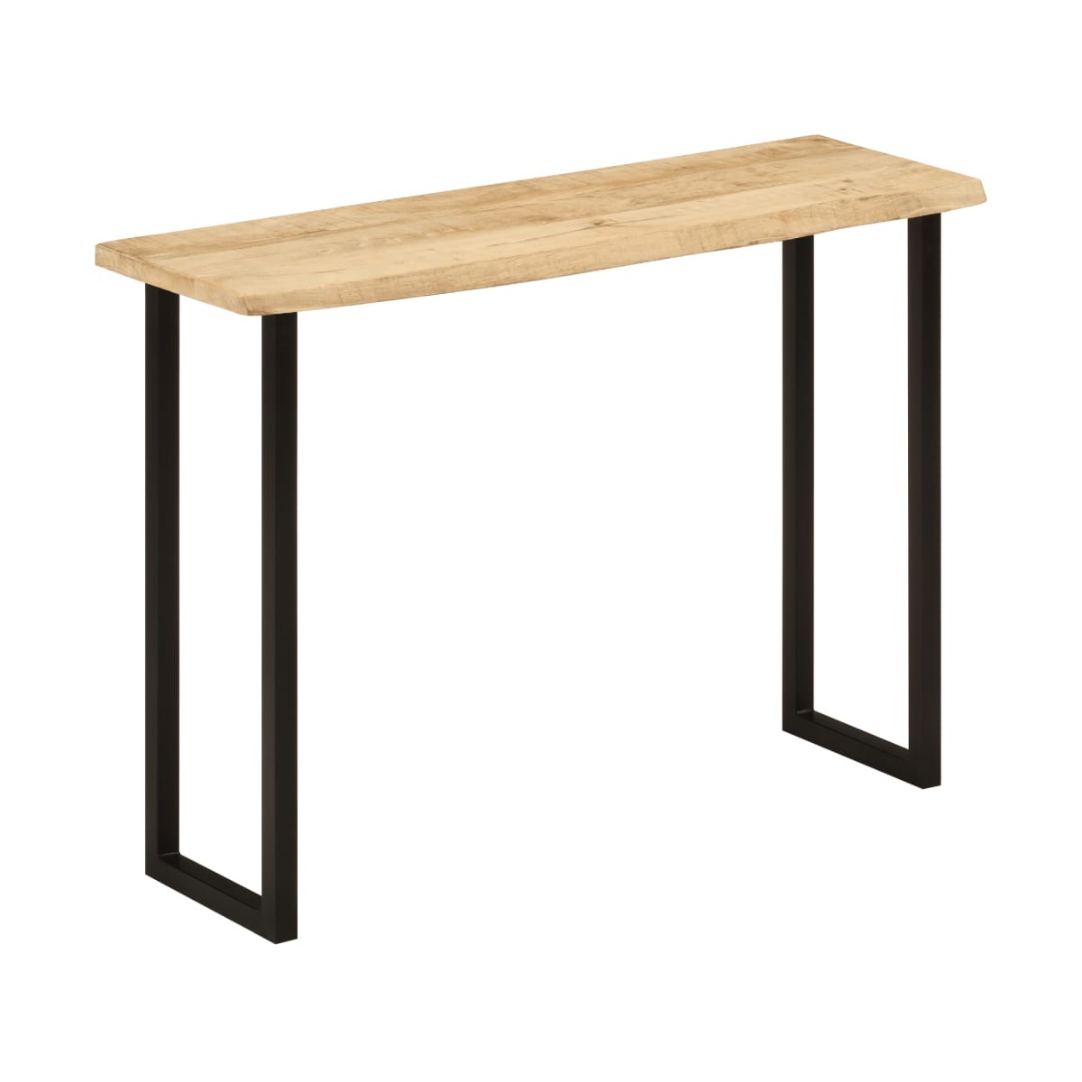 Esta mesa consola, con superficie de madera maciza de mango y patas estables en forma de U, es un complemento perfecto para tu sala de estar o pasillo. Madera maciza de mango: El tablero está hecho de madera maciza de mango. La madera maciza de mango es una madera tropical, dura y resistente, que sirve para hacer muebles robustos. Las bonitas vetas de la madera hacen que cada mueble sea ligeramente diferente al resto.Borde vivo: El borde vivo de la madera que sigue la forma natural del árbol refuerza la belleza de la mesa.Estructura estable: Las patas de acero con recubrimiento en polvo en forma de U dan un estilo industrial a la casa, además de garantizar la estabilidad de la mesa auxiliar.Función de visualización: La robusta superficie es ideal para exhibir objetos decorativos, marcos de fotos o plantas en macetas. Información útil:Cada artículo es único, con variaciones de color y veta. La entrega es aleatoria garantizando la exclusividad y la individualidad del producto.