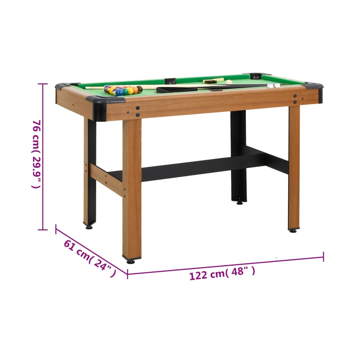 ¡Disfruta de una partida de billar en nuestra mesa de billar, hecha profesionalmente y diseñada a la perfección! Caracterizada por unas líneas elegantes y pulcras, nuestra mesa de billar de 4 patas será una gran atracción para salas de juegos, oficinas o gimnasios. Esta mesa de billar está hecha de MDF con acabado barnizado de PVC, lo que garantiza una calidad duradera. Se incluyen niveladores integrados para las patas con el fin de establecer un campo de juego uniforme. La superficie de juego está cubierta por una tela verde resistente al desgaste y ha sido concebida para no deformarse con el paso del tiempo. Esta mesa no solo tiene un aspecto impresionante, sino que se juega de maravilla y será un excelente lugar de reunión para crear recuerdos inolvidables con familia y amigos. La entrega incluye 2 palos de billar, 2 tizas, 1 triángulo, 15 bolas de billar numeradas, 1 bola blanca y 1 cepillo.