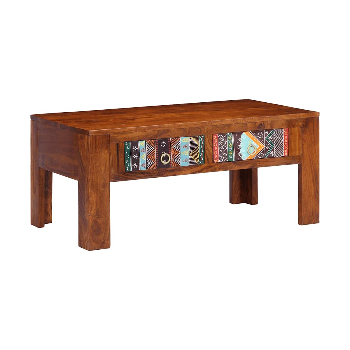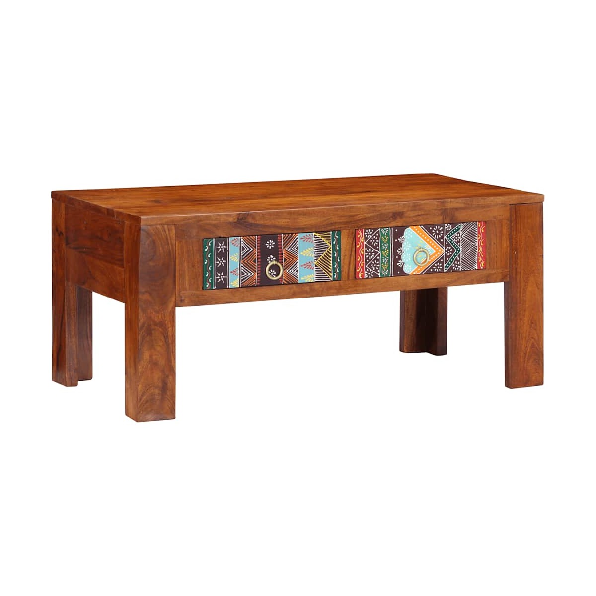 ¡Relájate y disfruta entreteniendo a tu familia y amigos alrededor de esta mesa de centro! Material robusto y estable: La madera maciza de acacia es conocida por su resistencia y durabilidad. Sus diversos colores y patrones de vetas únicos le dan una apariencia atractiva. Con buena estabilidad y resistencia a la intemperie, es ideal para fabricar muebles de interior y exterior.Amplio espacio de almacenamiento: Esta mesa de centro ofrece un amplio espacio de almacenamiento para mantener tus revistas, libros, DVDs, mandos a distancia y otros artículos pequeños bien organizados y al alcance.Superficie estable y resistente: La resistente superficie de la mesa es ideal para dejar bebidas o cualquier otra cosa que necesites al alcance de la mano.Fácil de mantener: Gracias a su superficie lisa, la mesa de café es fácil de limpiar con un paño húmedo y requiere menos mantenimiento. Información útil:Cada artículo es único, con variaciones de color y veta. La entrega es aleatoria garantizando la exclusividad y la individualidad del producto.