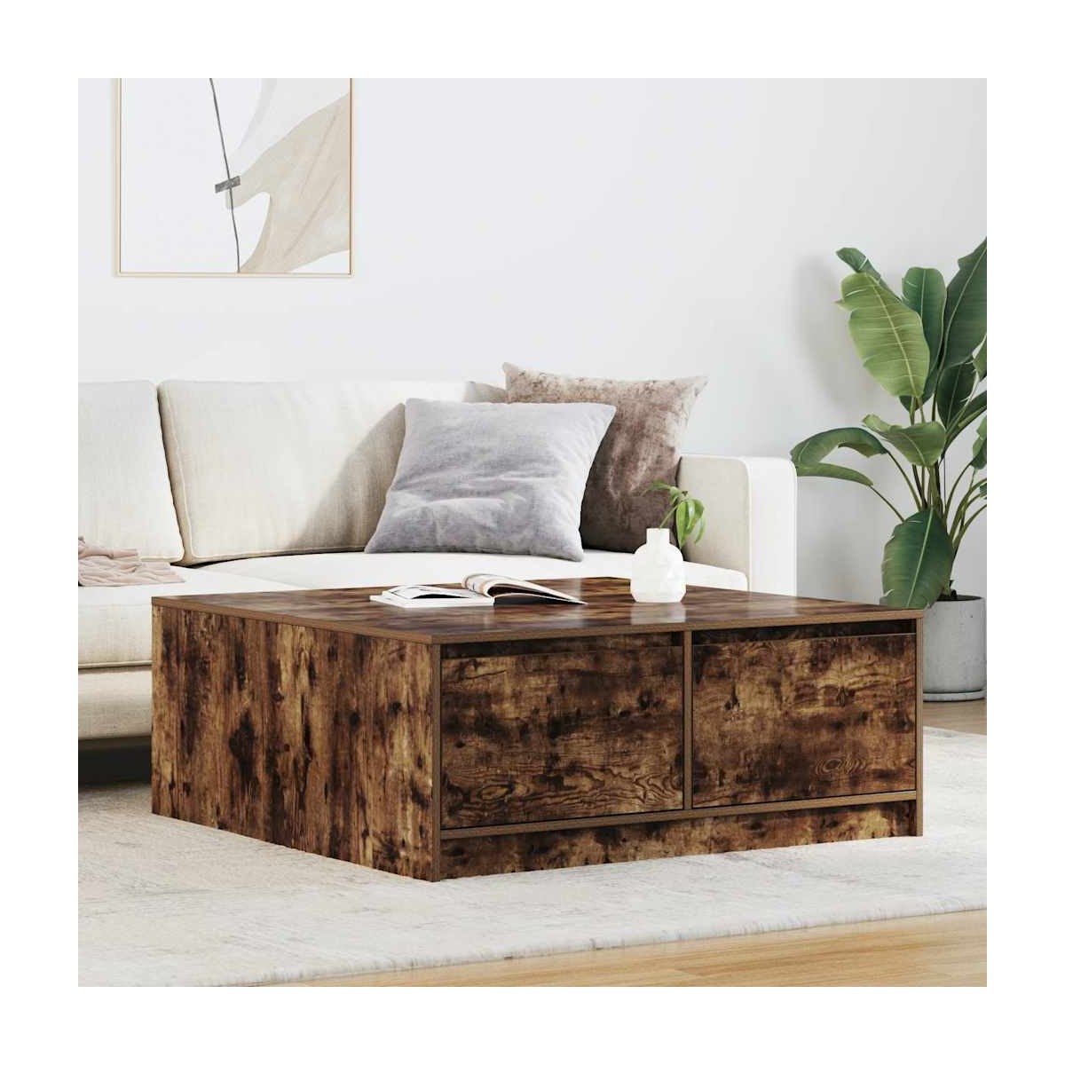 La mesa de café ofrece almacenamiento con múltiples cajones, manteniendo su espacio ordenado y organizado mientras agrega practicidad y estética a su espacio vital. Material estable y duradero: La madera de ingeniería es un material duradero y estable con una superficie lisa que es resistente a la humedad, la deformación y la rotura, lo que la convierte en una opción fiable para una variedad de proyectos.Amplio espacio de almacenamiento: la mesa de café ofrece varios cajones para mantener sus revistas, libros, DVD, control remoto y otros artículos pequeños bien organizados y al alcance.Tablero resistente y sólido: el tablero resistente proporciona una superficie confiable para mantener sus elementos esenciales a mano, lo que lo hace ideal para el uso diario. Ya sea que esté colocando bebidas, libros o elementos decorativos, su durabilidad garantiza que pueda realizar varias tareas con facilidad.Funcionalidad versátil: la mesa de centro se adapta sin esfuerzo a distintos entornos, desde servir aperitivos y bebidas durante reuniones hasta exhibir libros y decoración. Su diseño de líneas limpias garantiza una integración perfecta en cualquier espacio, lo que la hace perfecta para salas de estar, oficinas o acogedores rincones de lectura.Fácil de mantener: Gracias a su superficie lisa, la mesa de café es fácil de limpiar con un paño húmedo y requiere menos mantenimiento.