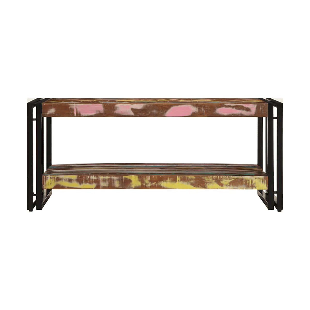 ¡Relájate y disfruta entreteniendo a tu familia y amigos alrededor de esta mesa de centro! Robusto y estable: La madera maciza reciclada consta de maderas reutilizadas como la teca, la madera de mango, la madera de pino y el haya. Dichos materiales proceden de antiguas construcciones como fábricas, cobertizos y barcos. Los signos de desgaste y la estructura visible de la veta dan a cada pieza su propia historia y un aspecto único.Estructura estable y duradera: El hierro es fuerte, estable y duradero, lo que lo convierte en la opción ideal para una amplia gama de usos, desde la fabricación de muebles hasta la construcción.Superficie estable y resistente: La resistente superficie de la mesa es ideal para dejar bebidas o cualquier otra cosa que necesites al alcance de la mano.Múltiples usos: esta mesa auxiliar tiene múltiples usos. Puede funcionar como mesa auxiliar, mesa de centro o mesa de sofá en su sala de estar o dormitorio, para satisfacer sus necesidades específicas.Fácil de mantener: gracias a su superficie lisa, la mesa auxiliar es fácil de limpiar con un paño húmedo y requiere menos mantenimiento. Información útil:Cada artículo es único, con variaciones de color y veta. La entrega es aleatoria garantizando la exclusividad y la individualidad del producto.
