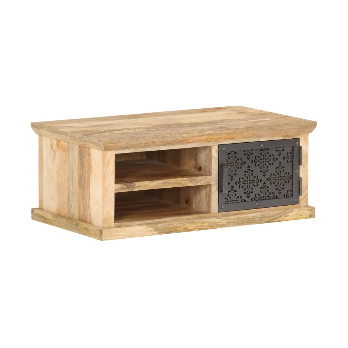 Nuestra mesa de centro, con su encanto rústico, combina fácilmente con la decoración de tu hogar. Esta mesa de centro está hecha de madera de mango maciza, con un bonito acabado pulido, pintado y lacado, lo que le da un aspecto refinado. Las puertas de acero con un diseño hueco aportan belleza al mueble. Incluye dos estantes abiertos y una puerta, lo que proporciona un amplio espacio de almacenamiento para almacenar y organizar libros, mandos a distancia u otras pertenencias personales.