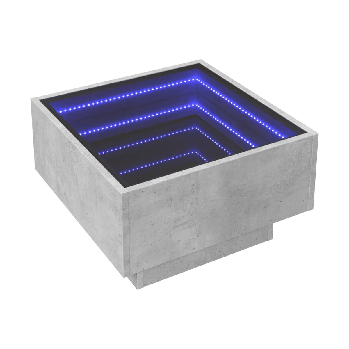 La exclusiva mesa de centro con un espejo infinito LED es adecuada para diferentes lugares. Es una mesa imprescindible para tu casa. Material estable y duradero: La madera de ingeniería es un material duradero y estable con una superficie lisa que es resistente a la humedad, la deformación y la rotura, lo que la convierte en una opción fiable para una variedad de proyectos.Luces LED RGB para un ambiente agradable: Esta mesa de centro cuenta con luces LED que pueden ajustarse fácilmente para crear un espectáculo de luces personalizado, mejorando el ambiente de tu espacio interior.Superficie resistente: La robusta superficie de la mesita de salón es perfecta para colocar bebidas, comida y otros objetos decorativos.Diversos usos: Esta mesa de centro sirve para múltiples propósitos. Puede funcionar como mesa auxiliar o mesa de sofá en tu salón o dormitorio, atendiendo a tus necesidades específicas. Información útil:El producto tiene un conector USB que necesita una fuente de alimentación USB certificada de 5 V (no incluida).