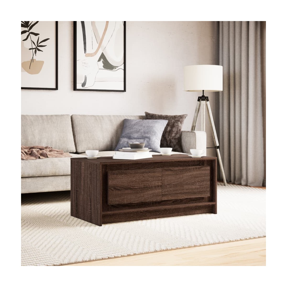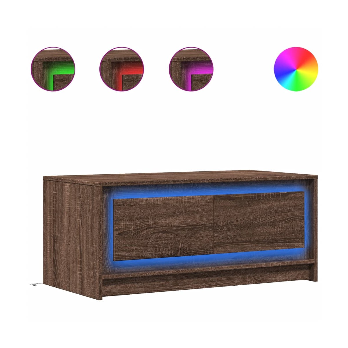 Funcional y bonita, esta mesa de centro se convertirá en el centro de atención de la estancia. Material estable y duradero: La madera de ingeniería es un material duradero y estable con una superficie lisa que es resistente a la humedad, la deformación y la rotura, lo que la convierte en una opción fiable para una variedad de proyectos.Amplio espacio de almacenamiento: Esta mesa de centro ofrece un amplio espacio de almacenamiento para mantener tus revistas, libros, DVDs, mandos a distancia y otros artículos pequeños bien organizados y al alcance.Luces LED RGB para un ambiente agradable: Esta mesa cuenta con luces LED que se pueden ajustar fácilmente para crear un espectáculo de luces personalizado. Puedes personalizar los modos, los colores y el brillo para mejorar el ambiente de tu espacio de interior.Superficie estable y resistente: La resistente superficie de la mesa es ideal para dejar bebidas o cualquier otra cosa que necesites al alcance de la mano. Información útil:El producto tiene un conector USB que necesita una fuente de alimentación USB certificada de 5 V (no incluida).