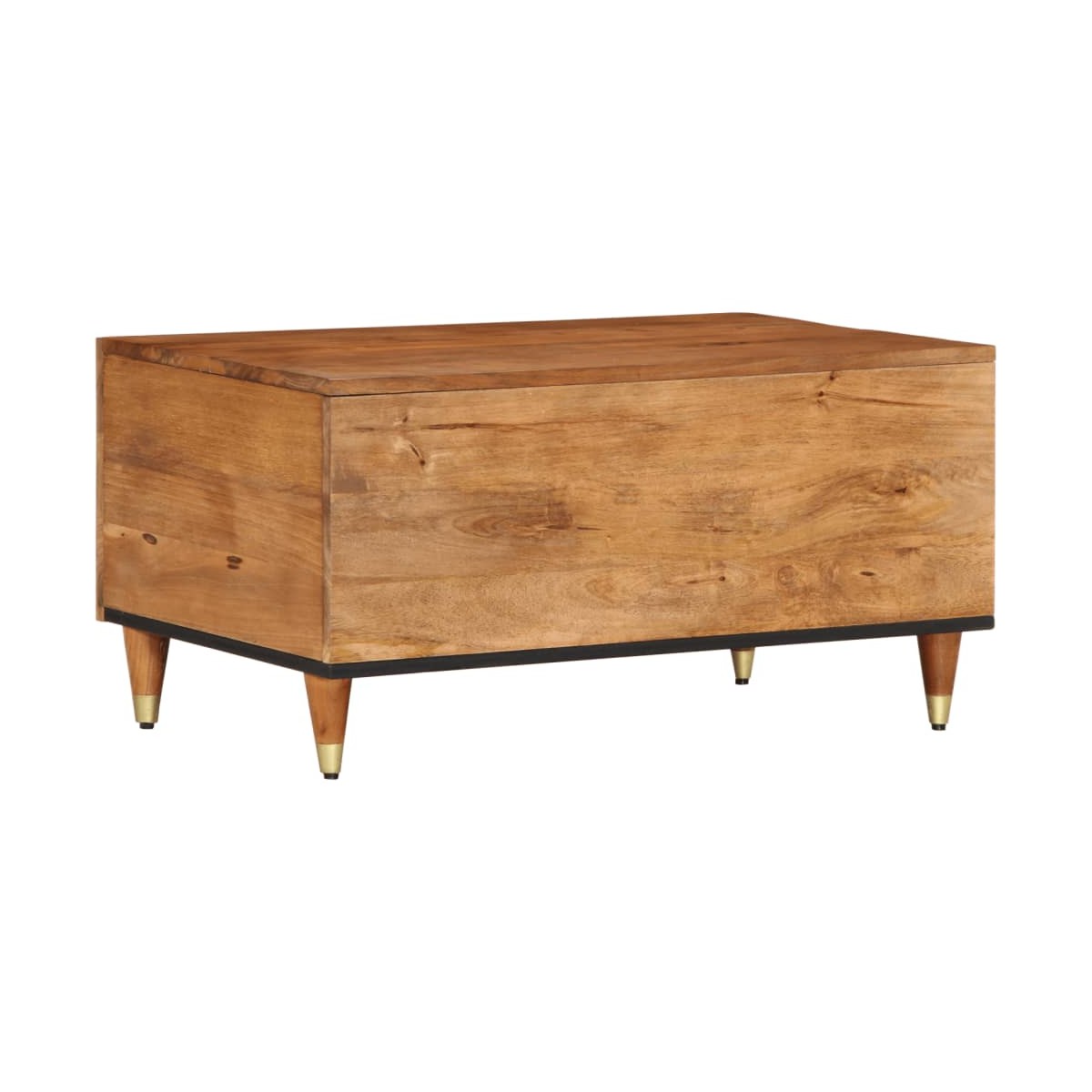 Dale un toque de elegancia a la casa con esta estilosa mesa de centro. Madera maciza de mango: La madera maciza de mango es una madera dura, tropical y resistente, que sirve para hacer muebles robustos. Las bonitas vetas de la madera hacen que cada mueble sea ligeramente diferente al resto. Hecha de madera maciza de mango, la mesa auxiliar es muy duradera y estable.Amplio espacio de almacenamiento: Esta mesita de sofá ofrece un amplio espacio de almacenaje para mantener tus cosas bien organizadas y al alcance.Superficie resistente: La robusta superficie de la mesita de salón es perfecta para colocar bebidas, comida y otros objetos decorativos.Práctica puerta: Mantén los objetos básicos sin polvo al esconderlos detrás de la puerta de esta mesa de sofá.Patas de hierro: Las patas de hierro dan un estilo tranquilo a la casa, además de garantizar la estabilidad de la mesa. Información útil:Cada artículo es único, con variaciones de color y veta. La entrega es aleatoria garantizando la exclusividad y la individualidad del producto.