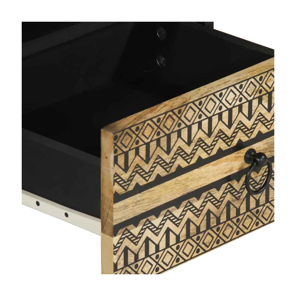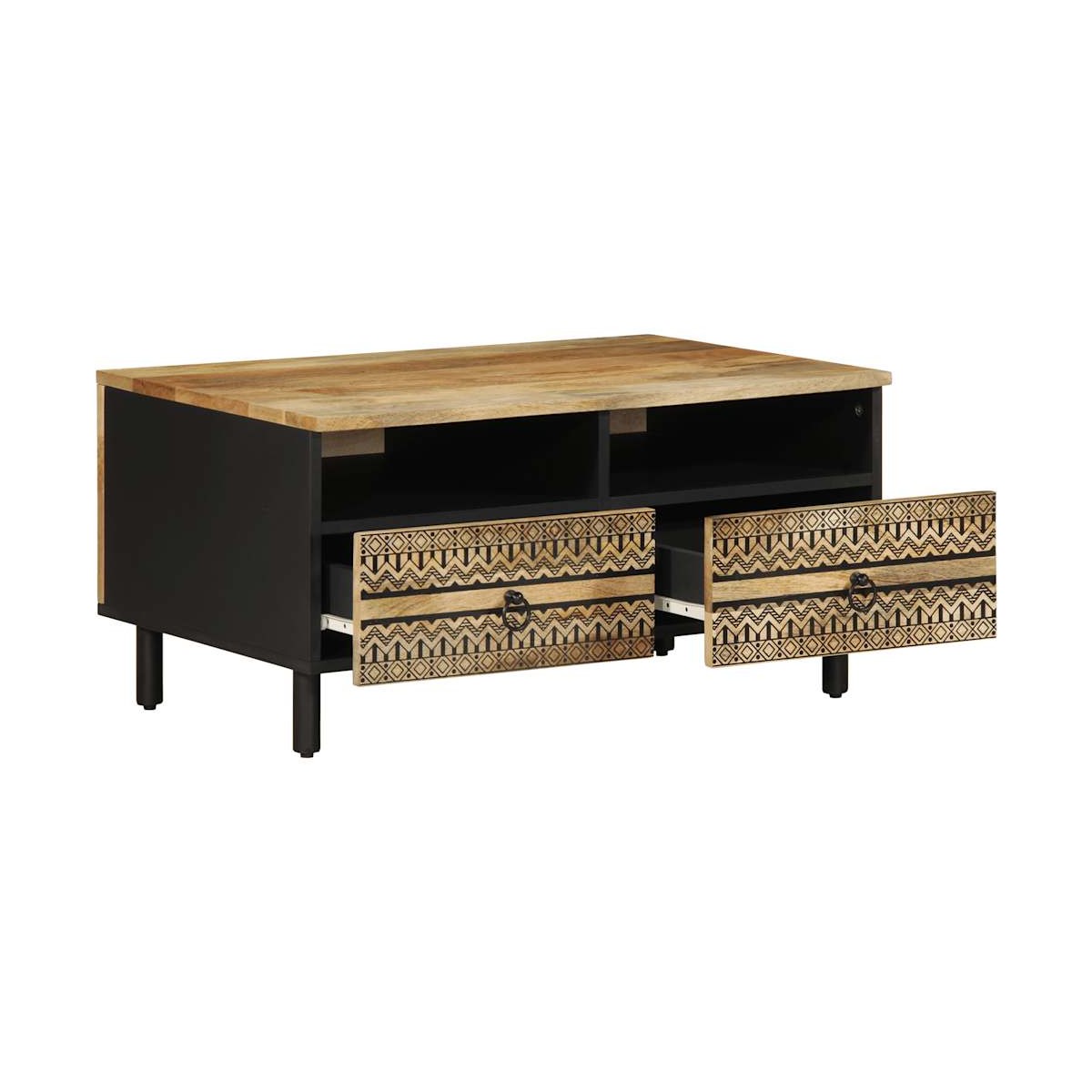 ¡Relájate y disfruta entreteniendo a tu familia y amigos alrededor de esta mesa de centro! Material robusto y estable: La madera maciza de mango, una madera dura tropical robusta, es muy apreciada para la fabricación de muebles por su excepcional durabilidad y resistencia. Las bonitas vetas de la madera hacen que cada mueble sea ligeramente diferente al resto.Amplio espacio de almacenamiento: Esta mesa auxiliar ofrece un amplio espacio de almacenamiento para mantener tus revistas, libros, DVDs, mandos a distancia y otros artículos pequeños bien organizados y al alcance.Superficie estable y resistente: La resistente superficie de la mesa es ideal para dejar bebidas o cualquier otra cosa que necesites al alcance de la mano.Con patas: Las patas elevadas facilitan la limpieza debajo del armario, manteniendo un aspecto ordenado y garantizando una mejor circulación del aire alrededor de los equipos electrónicos. Información útil:Cada artículo es único, con variaciones de color y veta. La entrega es aleatoria garantizando la exclusividad y la individualidad del producto.