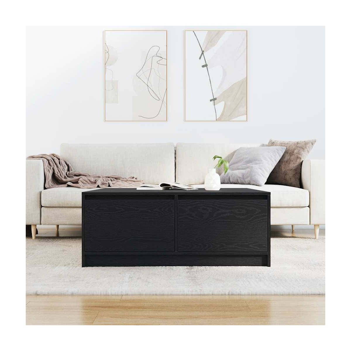 La mesa de café ofrece almacenamiento con múltiples cajones, manteniendo su espacio ordenado y organizado mientras agrega practicidad y estética a su espacio vital. Material estable y duradero: La madera de ingeniería es un material duradero y estable con una superficie lisa que es resistente a la humedad, la deformación y la rotura, lo que la convierte en una opción fiable para una variedad de proyectos.Amplio espacio de almacenamiento: la mesa de café ofrece varios cajones para mantener sus revistas, libros, DVD, control remoto y otros artículos pequeños bien organizados y al alcance.Tablero resistente y sólido: el tablero resistente proporciona una superficie confiable para mantener sus elementos esenciales a mano, lo que lo hace ideal para el uso diario. Ya sea que esté colocando bebidas, libros o elementos decorativos, su durabilidad garantiza que pueda realizar varias tareas con facilidad.Funcionalidad versátil: la mesa de centro se adapta sin esfuerzo a distintos entornos, desde servir aperitivos y bebidas durante reuniones hasta exhibir libros y decoración. Su diseño de líneas limpias garantiza una integración perfecta en cualquier espacio, lo que la hace perfecta para salas de estar, oficinas o acogedores rincones de lectura.Fácil de mantener: Gracias a su superficie lisa, la mesa de café es fácil de limpiar con un paño húmedo y requiere menos mantenimiento.