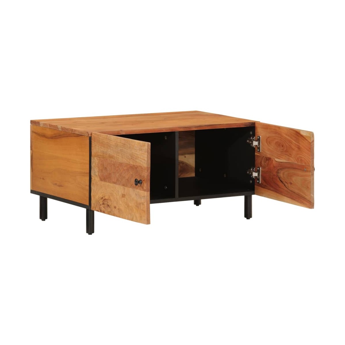 Dale un toque de elegancia a la casa con esta estilosa mesa de centro. Material de primera calidad: La madera maciza de acacia es un bonito material natural. La madera de acacia es una madera dura tropical, densa, robusta y duradera.Amplio espacio de almacenamiento: Esta mesita de sofá ofrece un amplio espacio de almacenaje para mantener tus cosas bien organizadas y al alcance.Superficie resistente: La robusta superficie de la mesita de salón es perfecta para colocar bebidas, comida y otros objetos decorativos.Puerta práctica: Evita que tus cosas se llenen de polvo escondiéndolas detrás de las puertas de esta mesita de sofá.Patas de hierro: Las patas de hierro dan un estilo tranquilo a la casa, además de garantizar la estabilidad de la mesa.
