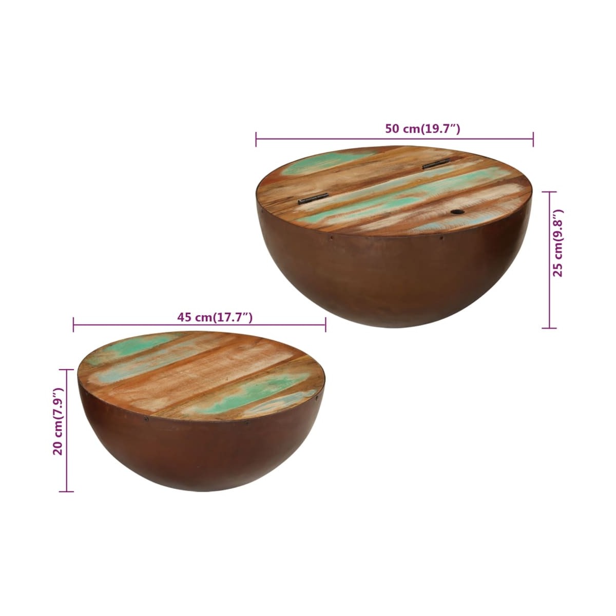 ¡Relájate y disfruta del entretenimiento con tu familia y amigos alrededor de estas mesas de centro retro! Madera maciza reciclada: La madera maciza reciclada consta de distintas maderas reutilizadas como la teca, la madera de mango, de pino y de haya. Dichos materiales proceden de antiguas construcciones como fábricas, cobertizos y barcos. Como cada pieza está hecha a mano, los colores variarán en cada producto. Hecho de madera maciza reciclada, el tablero de la mesa auxiliar es duradero y bonito.Almacenamiento adicional: El tablero de la mesa de centro grande se puede abrir y tiene un gran espacio para que guardes tus artículos esenciales diarios.Aspecto en forma de cuenco: La mesa de salón tiene forma de cuenco, lo que añade un toque distintivo a la decoración interior. Información útil:Los colores y las vetas varían en cada artículo, por lo que cada pieza es única. La entrega es aleatoria, asegurando la exclusividad e individualidad del producto.