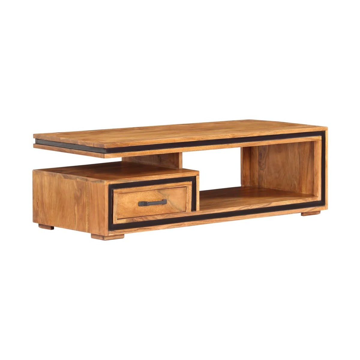 ¡Esta mesa de centro de madera será un aporte atemporal para la decoración de tu hogar! La mesa de centro está hecha de madera maciza de acacia con un acabado con un toque color miel, lo que la hace muy duradera y estable. La madera maciza de acacia es una madera dura con hermosas vetas que durará muchos años. Similar a la madera maciza de acacia, conocida como palo de rosa o palisandro, también es famosa por sus ricas vetas. Cada paso del proceso se lleva a cabo con el máximo cuidado, ya sea el pulido, la pintura o el lacado. Además, esta mesita de salón cuenta con 1 compartimento y 1 cajón, lo que brinda un espacio cómodo para guardar sus libros, tazas y otros artículos. Nota importante: Los colores y las vetas de la madera varían de una pieza a otra, por lo que cada pieza es única y ligeramente diferente de las demás. La entrega es aleatoria, lo que garantiza la exclusividad e individualidad del producto.