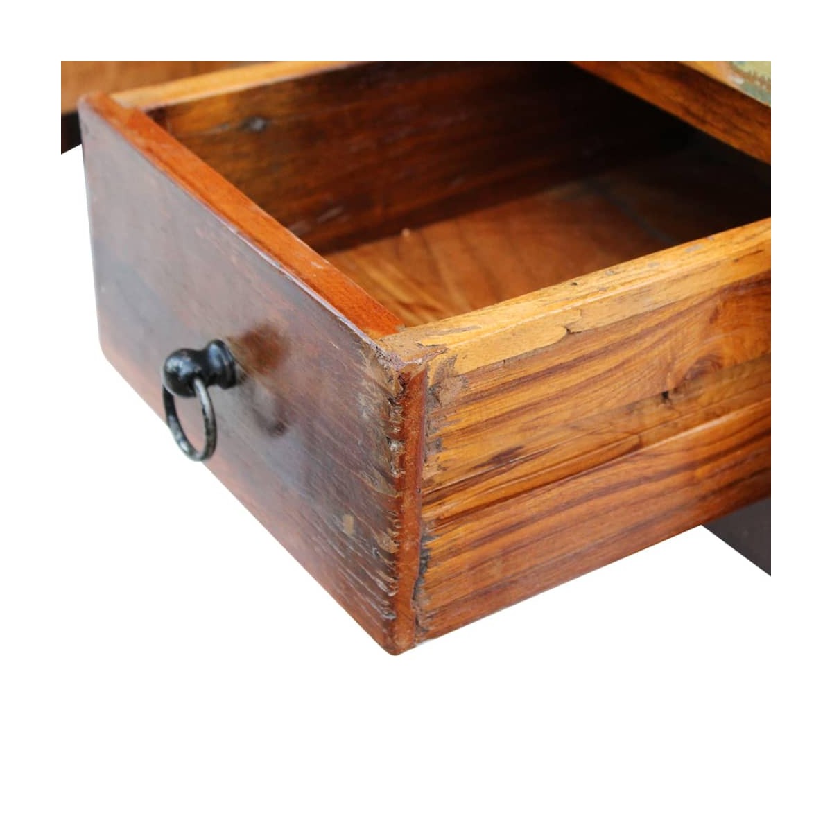 Esta mesa de centro de madera de estilo antiguo será un complemento único para tu habitación. Su construcción de madera maciza la hace estable y segura para colocar bebidas, cestas de fruta, artículos decorativos, etc. Equipada con dos cajones, la mesa de centro puede almacenar muchas cosas. Esta mesa de centro vintage también puede usarse como mesa de sofá, mesa de salón, mesa cajonera, etc. Hecha de madera reciclada, la mesa con cajones es sólida, duradera y hermosa, y tiene las características de diferentes tipos de madera como teca, madera de mango, acacia, madera reciclada, madera dura, etc. Cada mueble es único y ligeramente diferente del resto. Los signos de desgaste y la estructura de vetas visibles dan a cada pieza su propia historia y un aspecto único. Esta mesa de centro con cajones está totalmente hecha a mano. Cada paso del proceso se realiza con el mayor cuidado, ya sea el pulido, la pintura o el lacado. Nota importante: Los colores pueden variar de una pieza a otra, por lo que cada una de nuestras mesas sea única. La entrega es aleatoria, lo que garantiza la exclusividad e individualidad del producto.