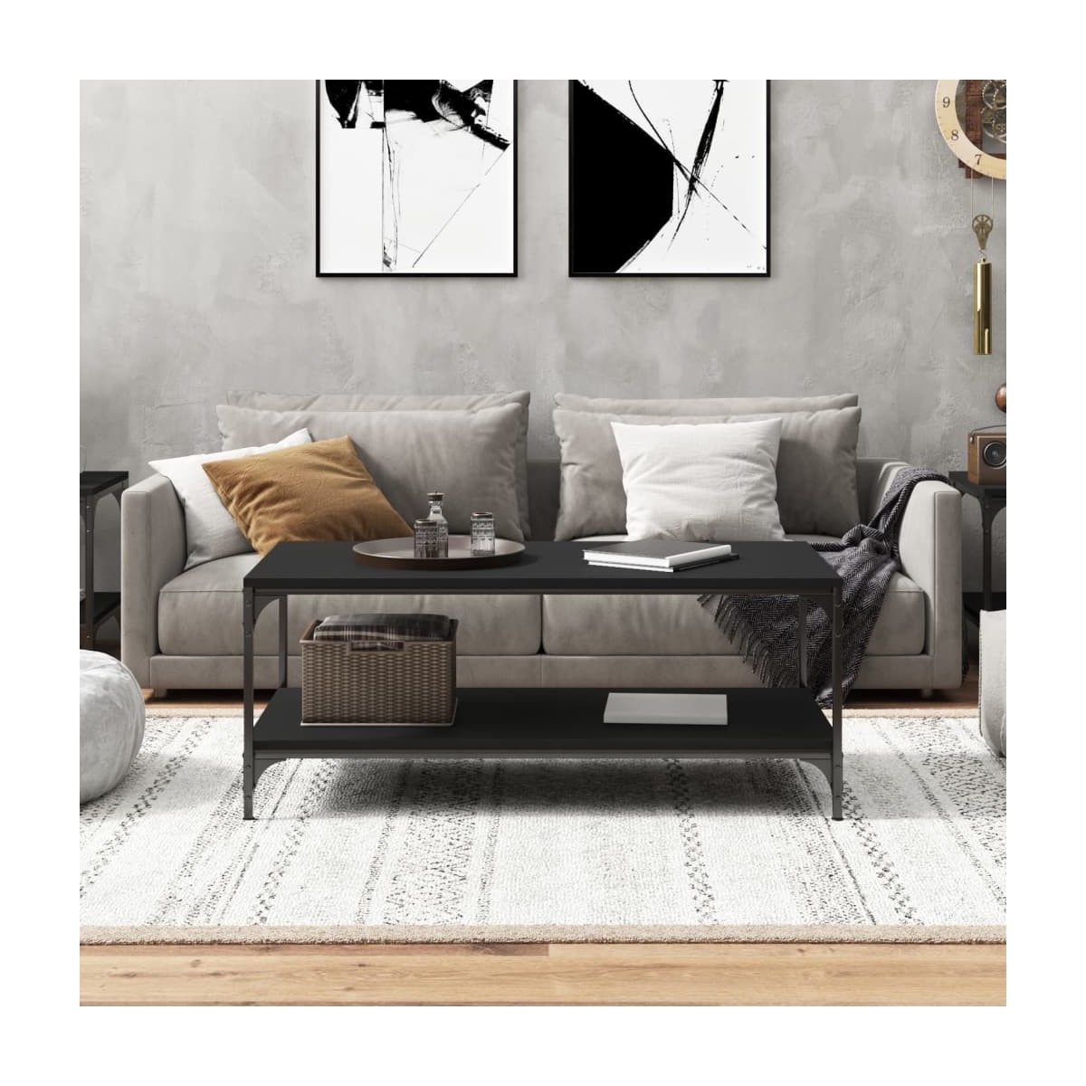 ¡Dale a tu salón un toque industrial único con esta elegante mesa de centro! Material práctico: La madera contrachapada tiene una calidad excepcional, con una superficie lisa y también cuenta con fuerza, estabilidad y resistencia a la humedad.Estructura estable: La estructura de acero de la mesa auxiliar garantiza su robustez y estabilidad.Amplio espacio de almacenamiento: La mesita de sofá ofrece un amplio espacio de almacenaje para mantener tus cosas bien organizadas y al alcance.Patas regulables: Gracias a las patas ajustables, la mesa de salón puede apoyarse en suelos irregulares sin dificultad.Superficie resistente: La robusta superficie de la mesa de sofá es perfecta para colocar bebidas, comida y otros objetos decorativos. Nota:Cada producto viene con un manual de montaje en la caja para facilitar el montaje.