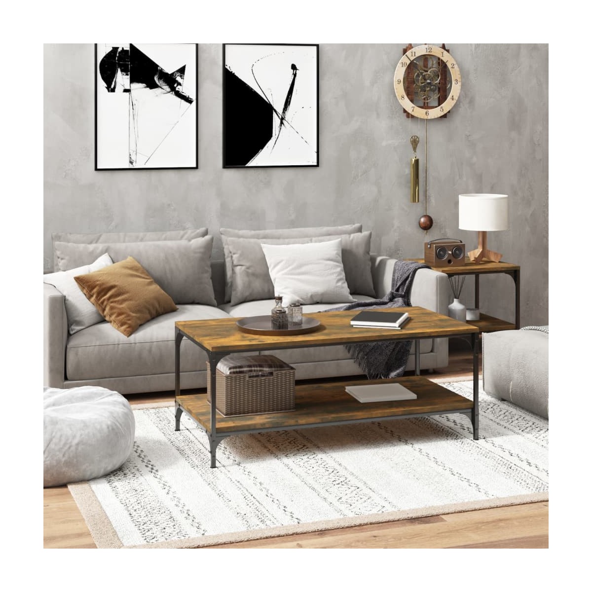 ¡Dale a tu salón un toque industrial único con esta elegante mesa de centro! Material práctico: La madera contrachapada tiene una calidad excepcional, con una superficie lisa y también cuenta con fuerza, estabilidad y resistencia a la humedad.Estructura estable: La estructura de acero de la mesa auxiliar garantiza su robustez y estabilidad.Amplio espacio de almacenamiento: La mesita de sofá ofrece un amplio espacio de almacenaje para mantener tus cosas bien organizadas y al alcance.Patas regulables: Gracias a las patas ajustables, la mesa de salón puede apoyarse en suelos irregulares sin dificultad.Superficie resistente: La robusta superficie de la mesa de sofá es perfecta para colocar bebidas, comida y otros objetos decorativos. Nota:Cada producto viene con un manual de montaje en la caja para facilitar el montaje.
