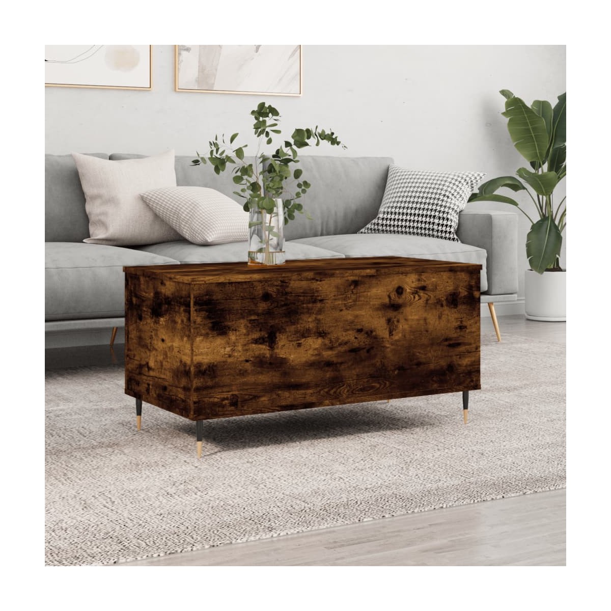 Dale un toque de elegancia a la casa con esta estilosa mesa de centro. Superficie que se levanta: La superficie de esta mesita auxiliar se puede levantar suavemente a una altura cómoda, para convertirla en un lugar para trabajar o para cenar.Material duradero: La madera contrachapada tiene una calidad excepcional, con una superficie lisa y también cuenta con fuerza, estabilidad y resistencia a la humedad. Hecha de madera tecnológica, la mesita de sofá es fácil de limpiar con un paño húmedo.Amplio espacio de almacenamiento: El almacenamiento oculto bajo la superficie ascendente facilita la organización y el acceso a libros y otros objetos, y ofrece suficiente superficie para las necesidades diarias, los aperitivos o el ordenador portátil.Patas de metal: Las patas de metal le dan un estilo moderno y tranquilo a la casa mientras garantizan su estabilidad.Mesa versátil: Con un diseño exclusivo, esta mesita de salón puede servir como mesa de comedor provisional e incluso como mesa para el ordenador, por lo que resulta una excelente inversión y aporte para cualquier espacio reducido.