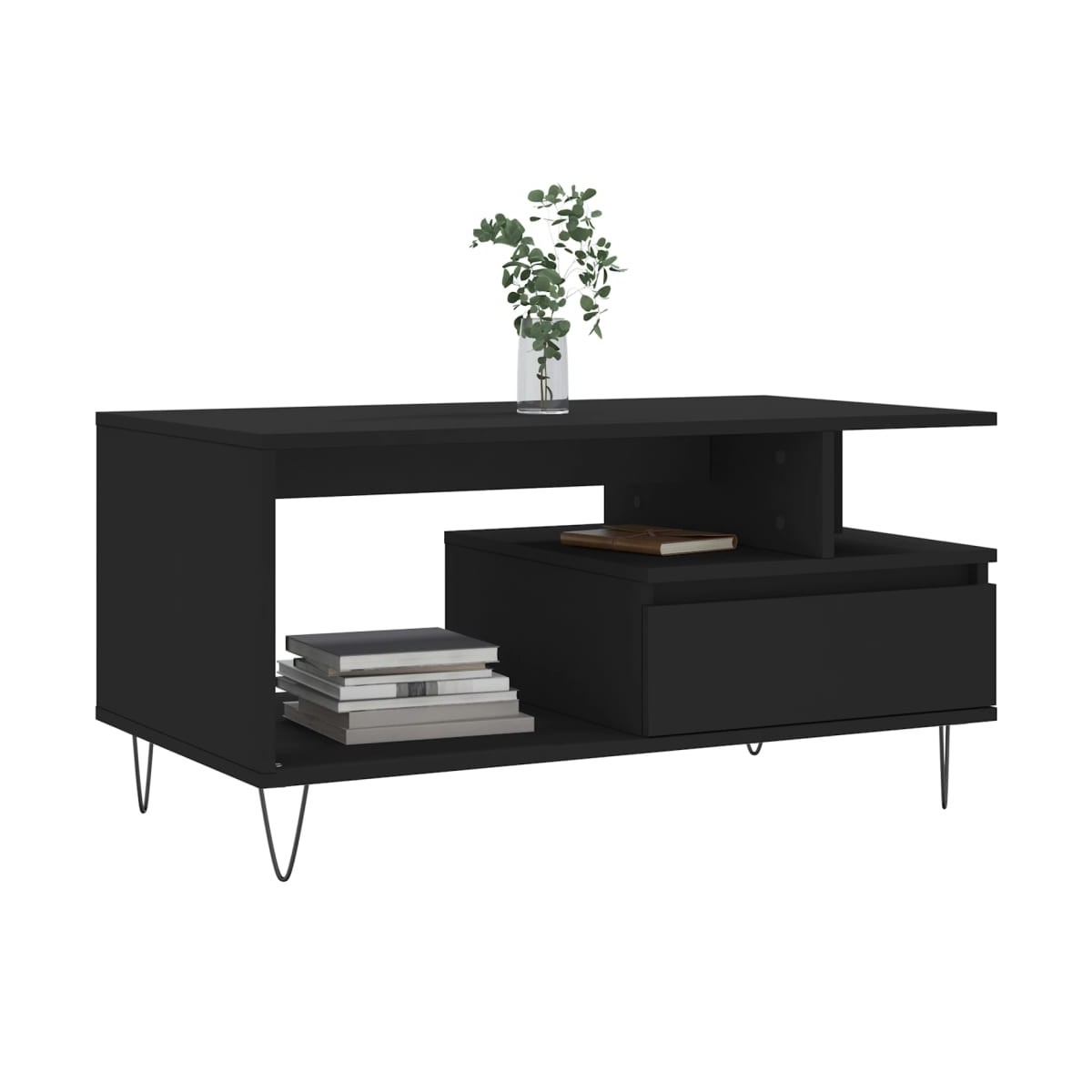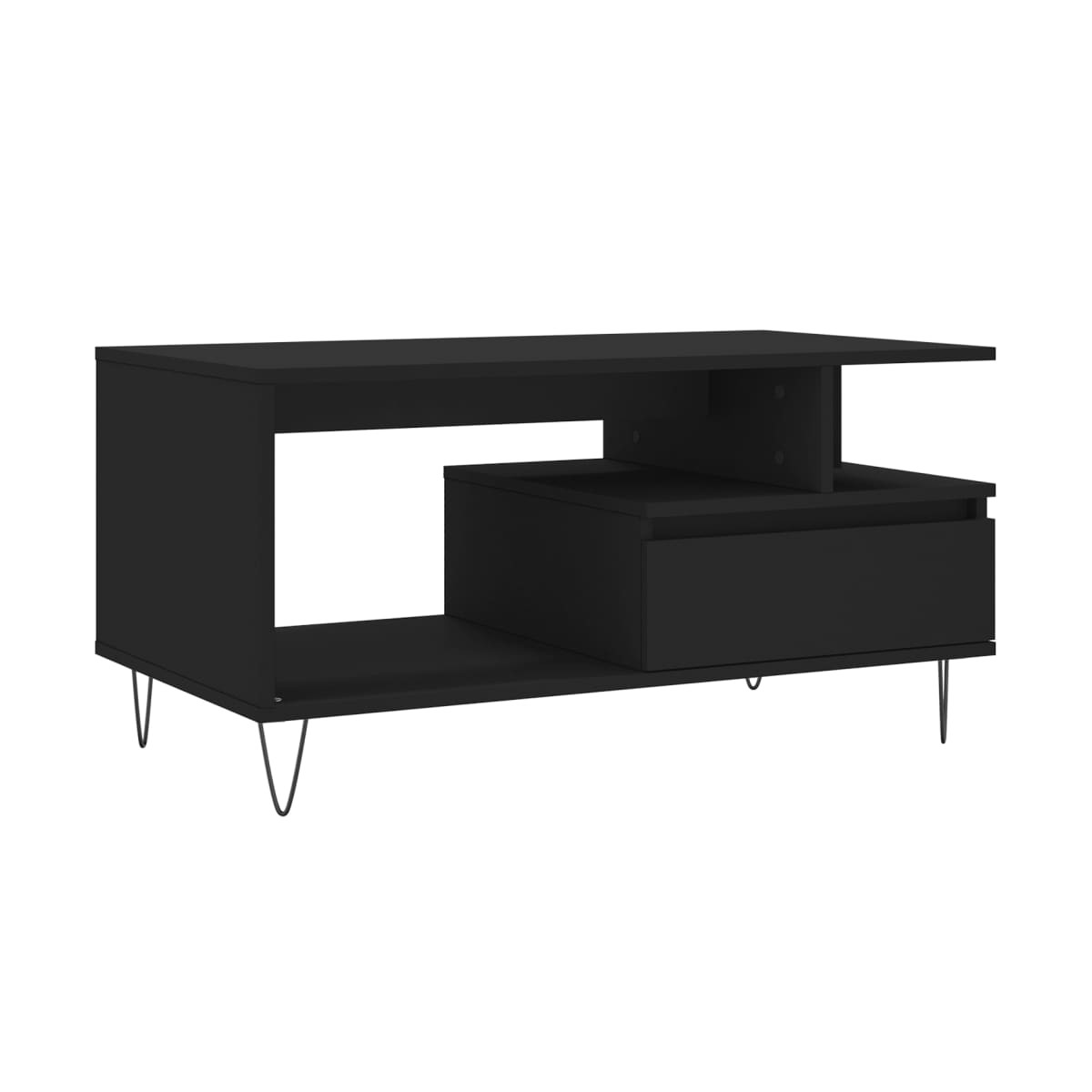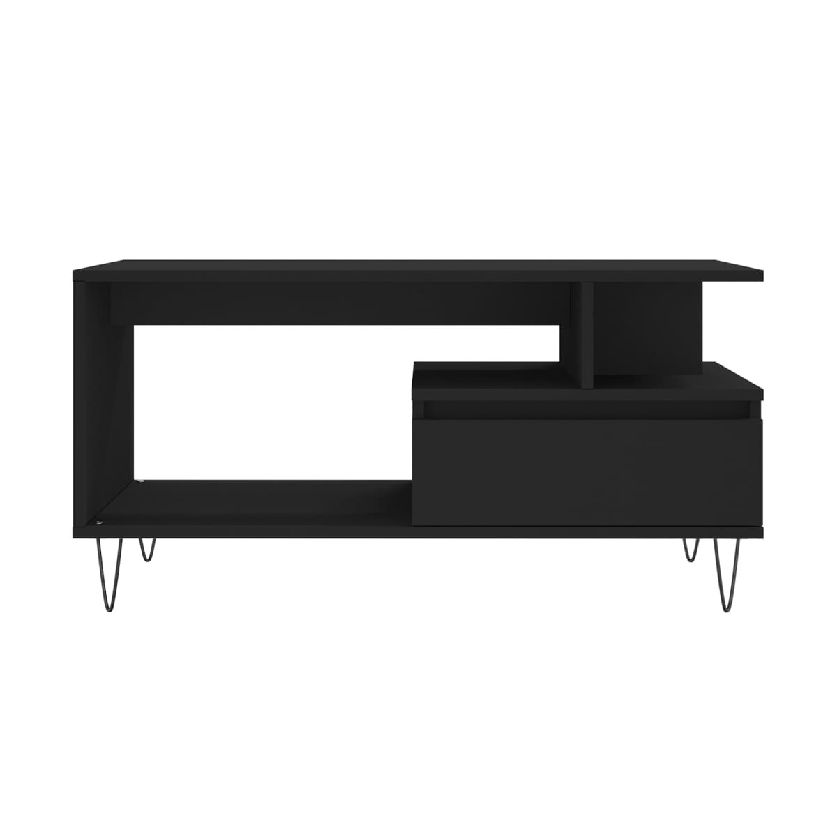 Dale un toque de elegancia a la casa con esta estilosa mesa de centro. Material duradero: La madera contrachapada tiene una calidad excepcional, con una superficie lisa y también cuenta con fuerza, estabilidad y resistencia a la humedad. Hecha de madera tecnológica, la mesa auxiliar es fácil de limpiar con un paño húmedo.Amplio espacio de almacenaje: Esta mesa de sofá con cajón ofrece un amplio espacio de almacenaje para mantener tus cosas bien organizadas y al alcance de la mano.Superficie resistente: La robusta superficie es perfecta para colocar bebidas, comida y artículos decorativos.Patas de metal: Las patas de metal le dan un estilo moderno y tranquilo a la casa mientras garantizan su estabilidad.