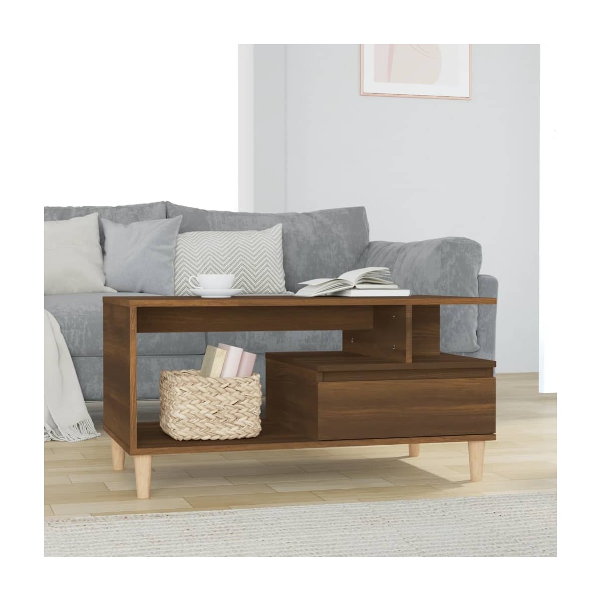 ¿Estás buscando una mesa de centro para tu tiempo libre? No busques más y hazte con esta práctica mesa de centro, que brinda una experiencia visual única a la casa. Material duradero: La madera contrachapada tiene una calidad excepcional, con una superficie lisa y también cuenta con fuerza, estabilidad y resistencia a la humedad. Hecha de madera contrachapada, la mesa auxiliar es fácil de limpiar.Patas de madera: Las patas de madera le dan al armario un aspecto natural y agradable a la vez que garantizan la estabilidad. Combina bien con cualquier decoración de interior.Amplio espacio de almacenaje: Esta mesita de sofá tiene compartimientos abiertos y un cajón, por lo que ofrece un amplio espacio de almacenamiento para mantener tus cosas del día a día bien organizadas y al alcance.Superficie resistente: La robusta superficie es perfecta para colocar bebidas, comida y artículos decorativos.Instalación flexible: El cajón se puede instalar a la derecha o la izquierda de forma flexible. Nota:Cada producto viene con un manual de montaje en la caja para facilitar el montaje.