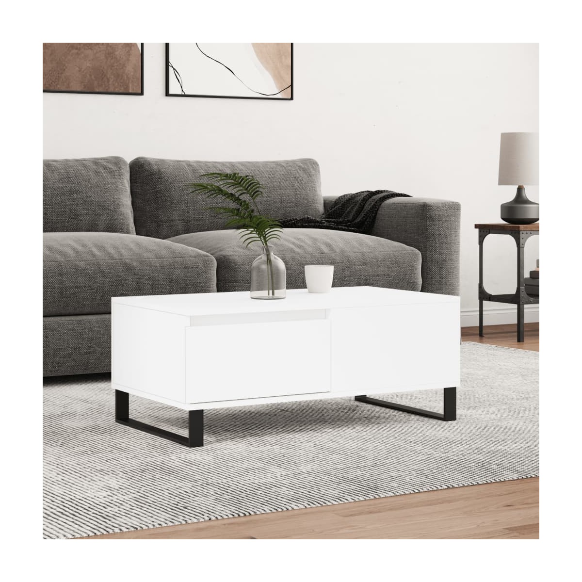 Dale un toque de elegancia a la casa con esta estilosa mesa de centro. Material duradero: La madera contrachapada tiene una calidad excepcional, con una superficie lisa y también cuenta con fuerza, estabilidad y resistencia a la humedad. Hecha de madera tecnológica, la mesa auxiliar es fácil de limpiar con un paño húmedo.Amplio espacio de almacenaje: Esta mesa de sofá con cajón ofrece un amplio espacio de almacenaje para mantener tus cosas bien organizadas y al alcance de la mano.Superficie resistente: La robusta superficie es perfecta para colocar bebidas, comida y artículos decorativos.Patas de metal: Las patas de metal le dan un estilo moderno y tranquilo a la casa mientras garantizan su estabilidad.