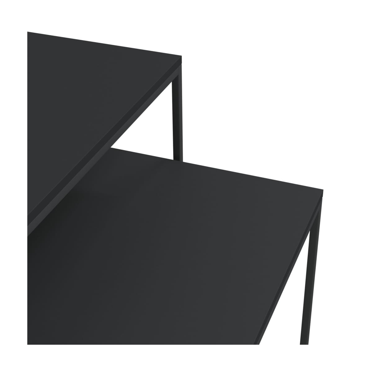 Este exclusivo y elegante juego de mesas de centro, con mesas de dos tamaños diferentes, está destinado a ser un gran aporte para la sala de estar, el pasillo, etc. Material de primera calidad: La madera contrachapada tiene una calidad excepcional, con una superficie lisa, y también cuenta con fuerza, estabilidad y resistencia a la humedad. Hechas de madera contrachapada, las superficies de las mesitas de centro son fáciles de limpiar.Estructura robusta y resistente: Las estructuras de hierro de las mesitas apilables garantizan su solidez y estabilidad.Mesas apilables versátiles: El juego de mesas apilables se puede utilizar como mesitas de noche, mesas auxiliares, mesitas de sofá, etc. Puedes utilizarlas por separado o apilarlas para ahorrar espacio de almacenamiento.