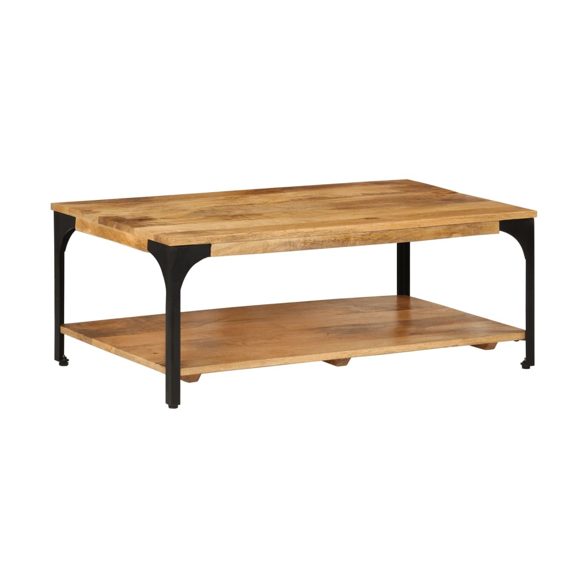 Da un toque industrial a la casa con esta elegante mesa de centro de madera. Madera maciza de mango: La madera maciza de mango es una madera dura, tropical y resistente, que sirve para hacer muebles robustos. Las bonitas vetas de la madera hacen que cada mueble sea ligeramente diferente al resto.Estructura robusta: La estructura de acero con recubrimiento en polvo de esta mesa auxiliar garantiza su solidez y estabilidad.Amplio espacio de almacenaje: La mesita de sofá tiene 1 estante, para mantener tus cosas bien organizadas y al alcance.Superficie stable: La estable superficie de la mesita de salón es perfecta para colocar bebidas, comida y objetos decorativos. Información útil:Para facilitar al máximo el montaje, cada producto se entrega con un manual.