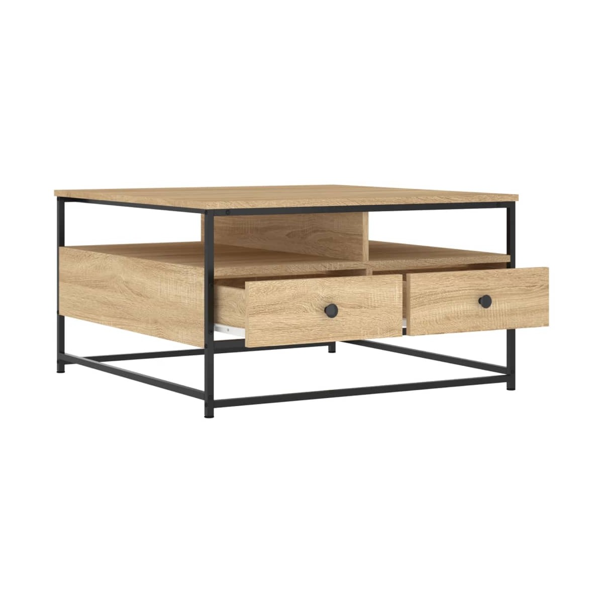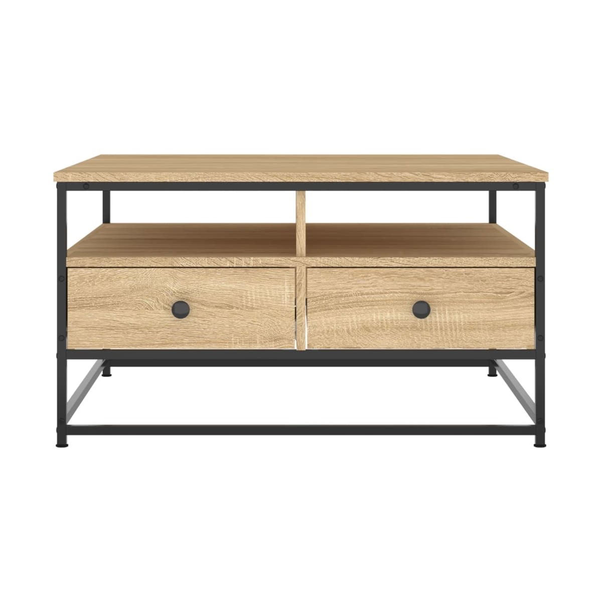 Dale un toque de elegancia a la casa con esta estilosa mesa de centro. Material duradero: La mesa auxiliar está hecha de madera de ingeniería. La madera de ingeniería tiene una calidad excepcional, con una superficie lisa, y también es fuerte, estable y resistente a la humedad.Amplio espacio de almacenamiento: Esta mesa del sofá con cajones y estantes ofrece un amplio espacio de almacenamiento para mantener tus objetos esenciales bien organizados y al alcance.Superficie stable: La estable superficie de la mesita de salón es perfecta para colocar bebidas, comida y objetos decorativos.Estructura robusta: La estructura de metal de esta mesa de sofá garantiza su solidez y estabilidad.