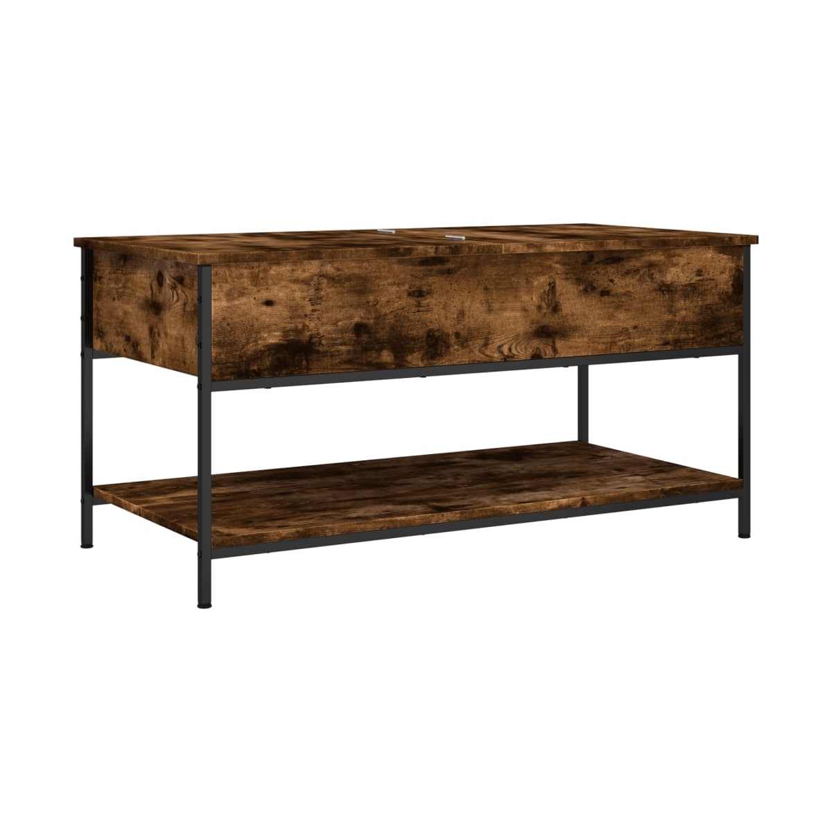 Dale un toque de elegancia a la casa con esta estilosa mesa de centro. Material duradero: La madera de ingeniería tiene una calidad excepcional, con una superficie lisa y también cuenta con fuerza, estabilidad y resistencia a la humedad.Amplio espacio de almacenamiento: La mesa del sofá tiene un amplio espacio de almacenamiento debajo con un compartimento oculto, para que puedas guardar tus artículos de uso frecuente y mantenerlos alejados del polvo.Función de visualización: El robusto tablero de la mesa del salón es perfecto para colocar tus bebidas, comida y otros artículos decorativos.Patas ajustables: La mesita de centro está equipada con 4 pies ajustables que pueden proteger el piso de arañazos y mantenerla estable en un suelo irregular.Estructura robusta: La estructura de metal de esta mesa de sofá garantiza su solidez y estabilidad.