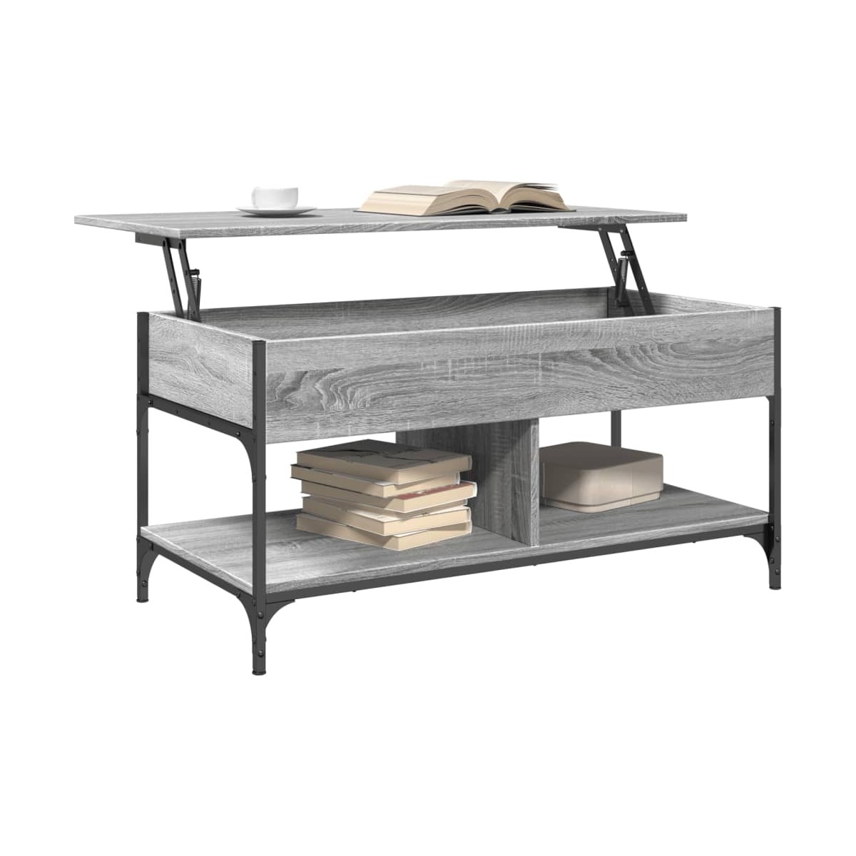 Dale un toque de elegancia a la casa con esta estilosa mesa de centro. Material duradero: La madera de ingeniería tiene una calidad excepcional, con una superficie lisa y también cuenta con fuerza, estabilidad y resistencia a la humedad.Superficie que se levanta: La superficie de esta mesita de sofá se puede levantar suavemente a una altura cómoda, para convertirla en un lugar para trabajar o para cenar.Amplio espacio de almacenamiento: La mesita de salón tiene un amplio espacio de almacenamiento debajo de la parte superior para un compartimento oculto, para que puedas almacenar tus artículos de uso frecuente y mantenerlos alejados del polvo.Patas ajustables: La mesita de centro está equipada con 4 pies ajustables que pueden proteger el piso de arañazos y mantenerla estable en un suelo irregular.Estructura robusta: La estructura de metal de esta mesa de sofá garantiza su solidez y estabilidad.