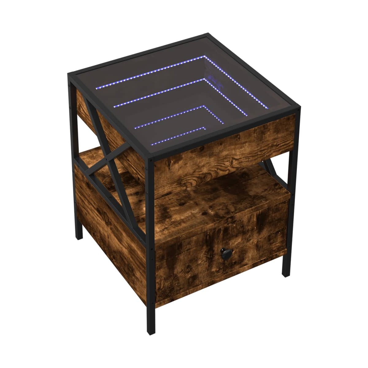 La exclusiva mesa de centro con espejo LED Infinity es adecuada para diferentes lugares. Material estable y duradero: La madera de ingeniería es un material duradero y estable con una superficie lisa que es resistente a la humedad, la deformación y la rotura, lo que la convierte en una opción fiable para una variedad de proyectos.Luces LED RGB para un ambiente agradable: Esta mesa cuenta con luces LED que se pueden ajustar fácilmente para crear un espectáculo de luces personalizado. Puedes personalizar los modos, los colores y el brillo para mejorar el ambiente de tu espacio de interior.Superficie resistente: La robusta superficie de la mesita de salón es perfecta para colocar bebidas, comida y otros objetos decorativos.Diversos usos: Esta mesa de centro sirve para múltiples propósitos. Puede funcionar como mesa auxiliar o mesa de sofá en tu salón o dormitorio, atendiendo a tus necesidades específicas.Estructura resistente: Las patas metálicas añaden un estilo tranquilo a la casa a la vez que garantizan la estabilidad. Información útil:El producto tiene un conector USB que necesita una fuente de alimentación USB certificada de 5 V (no incluida).