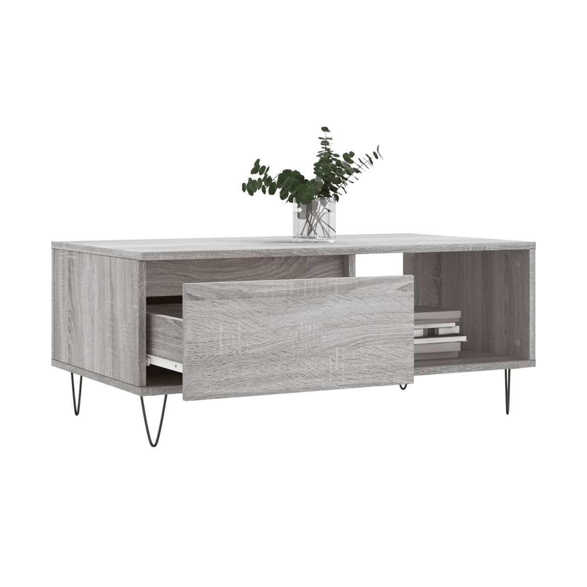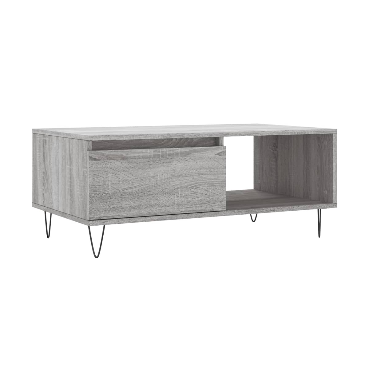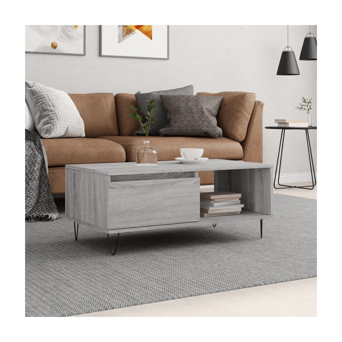Dale un toque de elegancia a la casa con esta estilosa mesa de centro. Material duradero: La madera contrachapada tiene una calidad excepcional, con una superficie lisa y también cuenta con fuerza, estabilidad y resistencia a la humedad. Hecha de madera tecnológica, la mesa auxiliar es fácil de limpiar con un paño húmedo.Amplio espacio de almacenaje: Esta mesita de sofá tiene un cajón y un compartimento, por lo que ofrece un amplio espacio de almacenamiento para mantener tus cosas bien organizadas y al alcance.Superficie resistente: La robusta superficie es perfecta para colocar bebidas, comida y artículos decorativos.Patas de metal: Las patas de metal le dan un estilo moderno y tranquilo a la casa mientras garantizan su estabilidad.