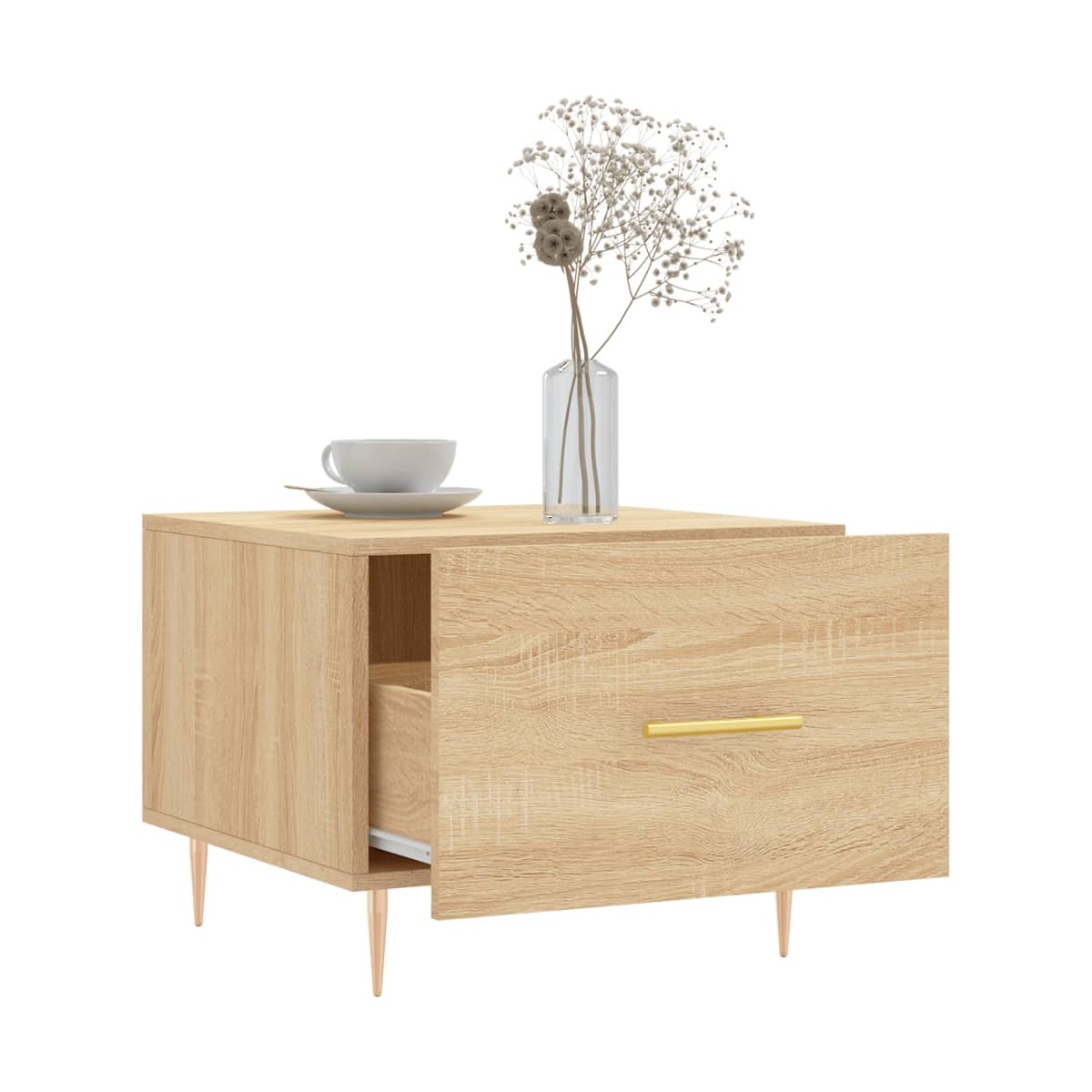 Dale un toque de elegancia a la casa con estas estilosas mesas de centro. Material duradero: La madera de ingeniería tiene una calidad excepcional, con una superficie lisa y también cuenta con fuerza, estabilidad y resistencia a la humedad.Amplio espacio de almacenaje: La mesa auxiliar tiene un cajón, que ofrece un amplio espacio de almacenaje para mantener tus cosas bien organizadas y al alcance.Superficie robusta: La robusta superficie de la mesita de sofá es perfecta para colocar bebidas, comida y otros objetos decorativos.Patas de hierro: Las patas de hierro dan un estilo tranquilo a la casa, además de garantizar la estabilidad de la mesa.