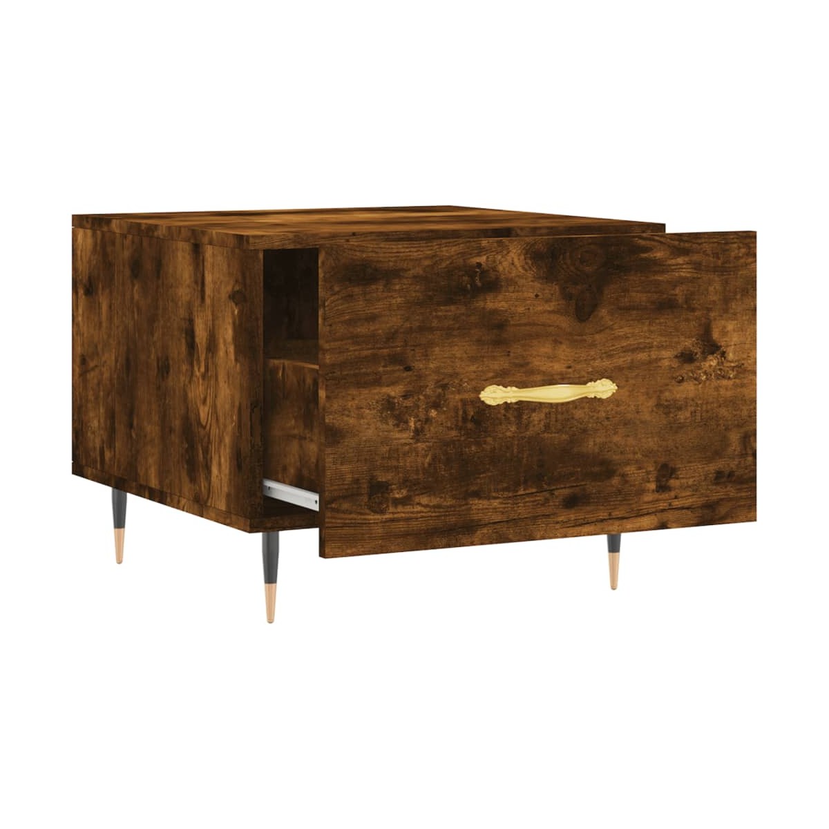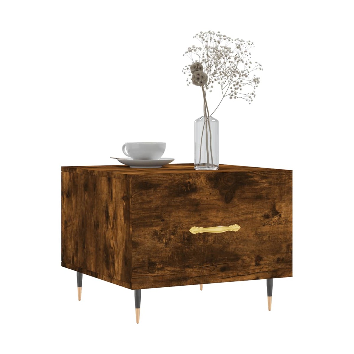 Dale un toque de elegancia a la casa con estas estilosas mesas de centro. Material duradero: La madera de ingeniería tiene una calidad excepcional, con una superficie lisa y también cuenta con fuerza, estabilidad y resistencia a la humedad.Amplio espacio de almacenaje: La mesa auxiliar tiene un cajón, que ofrece un amplio espacio de almacenaje para mantener tus cosas bien organizadas y al alcance.Superficie robusta: La robusta superficie de la mesita de sofá es perfecta para colocar bebidas, comida y otros objetos decorativos.Patas de hierro: Las patas de hierro dan un estilo tranquilo a la casa, además de garantizar la estabilidad de la mesa.