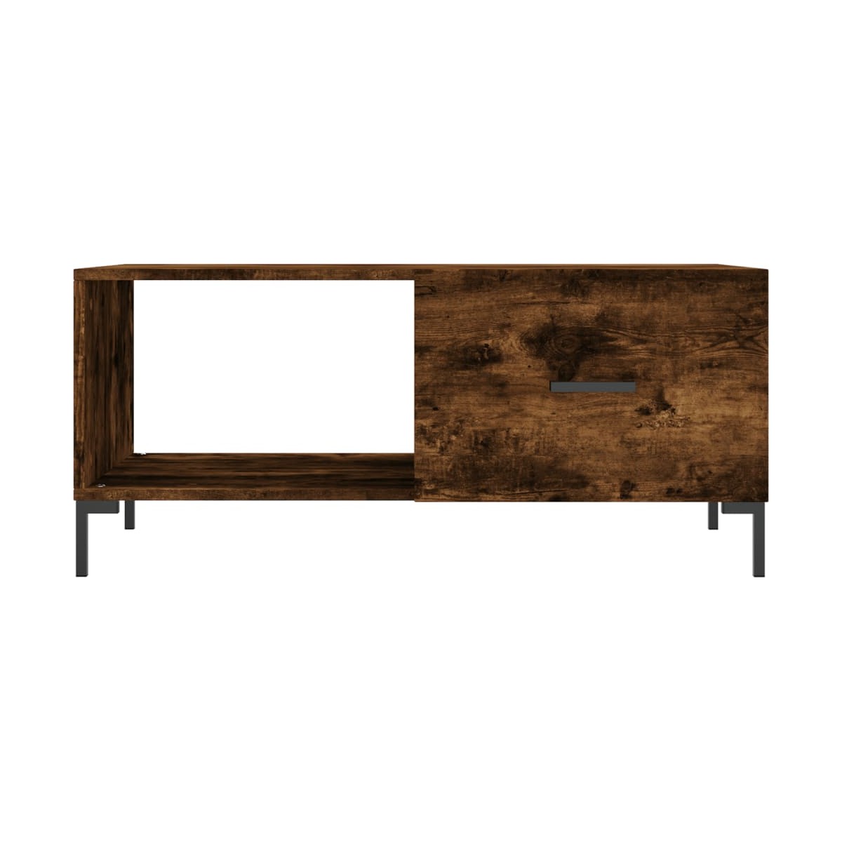 Dale un toque de elegancia a la casa con esta estilosa mesa de centro. Material duradero: La madera contrachapada tiene una calidad excepcional, con una superficie lisa y también cuenta con fuerza, estabilidad y resistencia a la humedad.Amplio espacio de almacenaje: Esta mesa auxiliar ofrece un amplio espacio de almacenaje para mantener tus cosas bien organizadas y al alcance de la mano.Superficie robusta: La robusta superficie de la mesita de sofá es perfecta para colocar bebidas, comida y otros objetos decorativos.Puerta práctica: Mantén ordenada la casa al esconder pequeños objetos esenciales detrás de la puerta de la mesita de salón.Patas de hierro: Las patas de hierro dan un estilo tranquilo a la casa, además de garantizar la estabilidad de la mesa.
