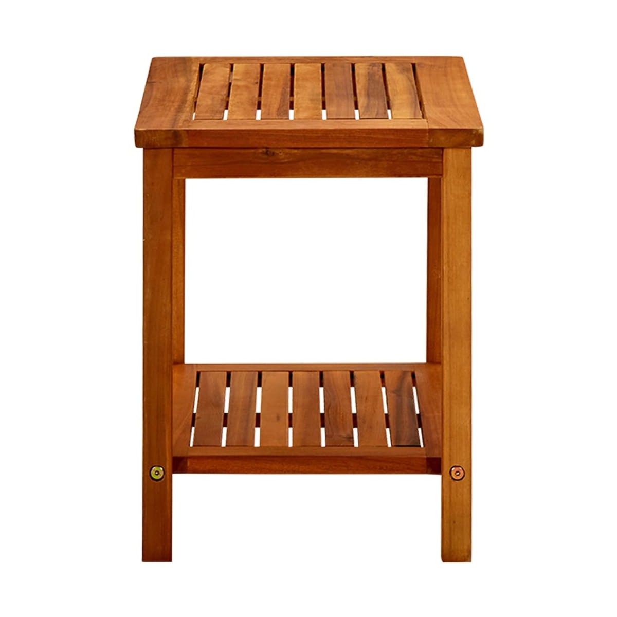 Disfruta de un agradable café con tu familia o amigos con esta elegante mesa de centro de madera. Esta mesa está hecha en madera maciza de acacia con acabado al aceite, que es resistente a la intemperie y duradera. Cada paso del proceso se lleva a cabo con el mayor cuidado, ya sea pulido o lacado. La robusta superficie con diseño de listones te ofrece espacio para poner algunos snacks, cestas de frutas, elementos decorativos, así como otros elementos esenciales. La mesa decorativa también cuenta con un estante inferior que proporciona espacio adicional para almacenar tus artículos esenciales organizados y al alcance. Nota importante: Los colores y las vetas de la madera varían de una pieza a otra, por lo que cada una es única. La entrega es aleatoria, lo que garantiza la exclusividad y la individualidad del producto. Nota: Para alargar la vida de tus muebles de exterior, te recomendamos limpiarlos regularmente y no dejarlos al aire libre sin protección innecesariamente.Limpieza: Usa una solución de jabón suaveAlmacenamiento: Si es posible, guárdala en un lugar fresco y seco en el interior. Si el producto se almacena en el exterior, protéjelo con una cubierta impermeable. Limpia y seca el exceso de agua o nieve de las superficies planas después de una lluvia o nevada. Permite la ventilación para evitar daños relacionados con la humedad.