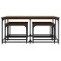 Las 5 mesas de centro apilables son la alternativa perfecta para pisos pequeños o cualquier zona con espacio limitado. Su diseño industrial convierte a este juego de mesas de centro en un aporte elegante para el salón, el dormitorio o la oficina. Material duradero: Las mesas apilables están hechas de madera de ingeniería, con una calidad excepcional y superficie lisa, además de ser fuerte, estable y resistente a la humedad.Diseño apilable: Las mesitas apilables tienen diferentes tamaños para distintos propósitos. Si necesitas más espacio, las mesas más pequeñas caben dentro de la mesa de centro más grande. Asimismo, puedes separarlas para ampliar la superficie.Función versátil: Las mesas auxiliares apilables son versátiles. Cualquiera de ellas se puede usar como mesita de noche en el dormitorio, mesa auxiliar o mesita de sofá en el salón y la oficina.Superficie resistente: La resistente superficie de las mesas apilables es ideal para dejar las bebidas o cualquier otra cosa que necesites tener al alcance de la mano.
