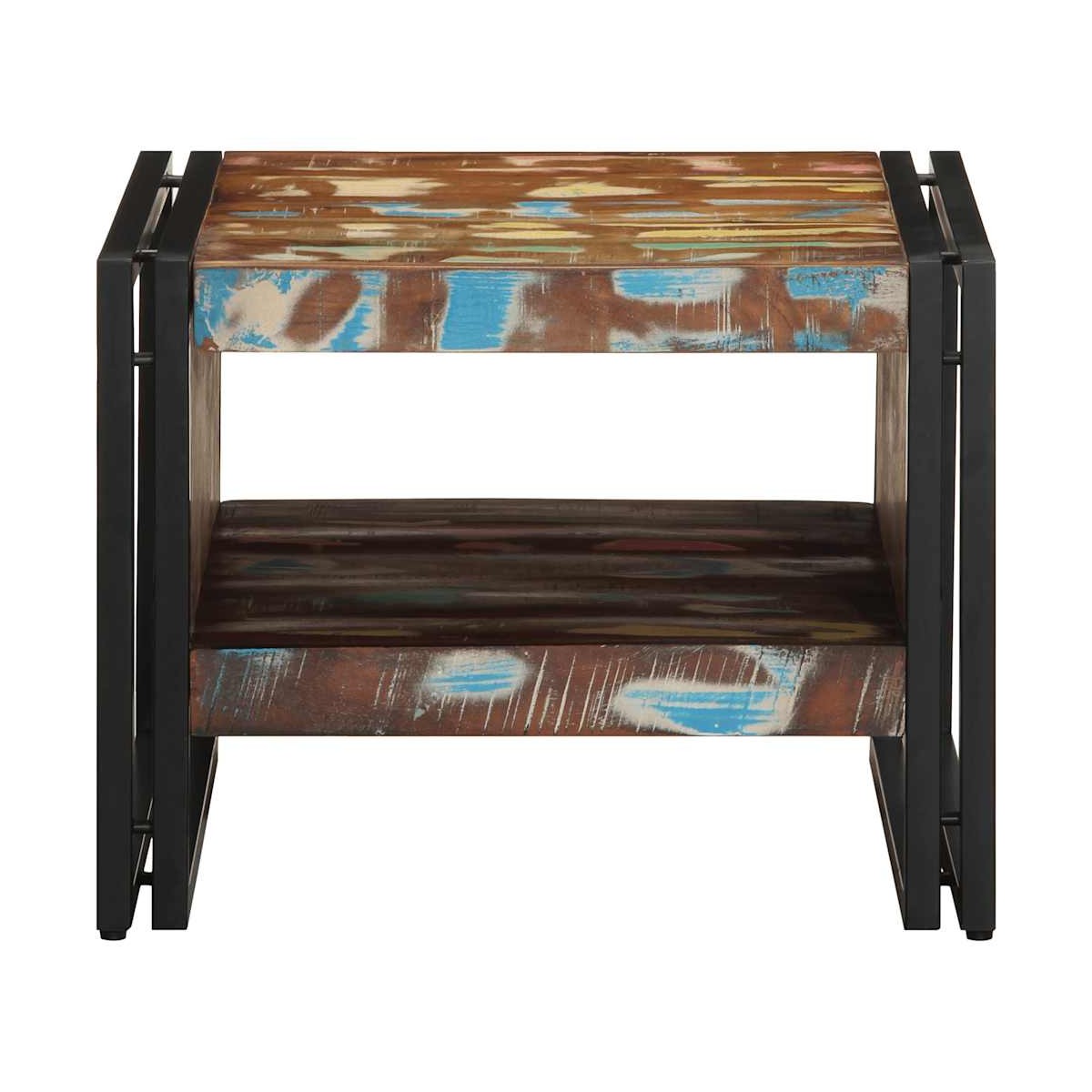 ¡Relájate y disfruta entreteniendo a tu familia y amigos alrededor de esta mesa de centro! Robusto y estable: La madera maciza reciclada consta de maderas reutilizadas como la teca, la madera de mango, la madera de pino y el haya. Dichos materiales proceden de antiguas construcciones como fábricas, cobertizos y barcos. Los signos de desgaste y la estructura visible de la veta dan a cada pieza su propia historia y un aspecto único.Estructura estable y duradera: El hierro es fuerte, estable y duradero, lo que lo convierte en la opción ideal para una amplia gama de usos, desde la fabricación de muebles hasta la construcción.Superficie estable y resistente: La resistente superficie de la mesa es ideal para dejar bebidas o cualquier otra cosa que necesites al alcance de la mano.Múltiples usos: esta mesa auxiliar tiene múltiples usos. Puede funcionar como mesa auxiliar, mesa de centro o mesa de sofá en su sala de estar o dormitorio, para satisfacer sus necesidades específicas.Fácil de mantener: gracias a su superficie lisa, la mesa auxiliar es fácil de limpiar con un paño húmedo y requiere menos mantenimiento. Información útil:Cada artículo es único, con variaciones de color y veta. La entrega es aleatoria garantizando la exclusividad y la individualidad del producto.