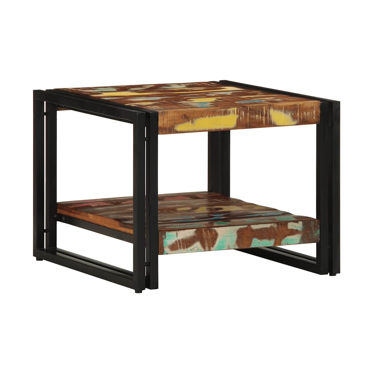 ¡Relájate y disfruta entreteniendo a tu familia y amigos alrededor de esta mesa de centro! Robusto y estable: La madera maciza reciclada consta de maderas reutilizadas como la teca, la madera de mango, la madera de pino y el haya. Dichos materiales proceden de antiguas construcciones como fábricas, cobertizos y barcos. Los signos de desgaste y la estructura visible de la veta dan a cada pieza su propia historia y un aspecto único.Estructura estable y duradera: El hierro es fuerte, estable y duradero, lo que lo convierte en la opción ideal para una amplia gama de usos, desde la fabricación de muebles hasta la construcción.Superficie estable y resistente: La resistente superficie de la mesa es ideal para dejar bebidas o cualquier otra cosa que necesites al alcance de la mano.Múltiples usos: esta mesa auxiliar tiene múltiples usos. Puede funcionar como mesa auxiliar, mesa de centro o mesa de sofá en su sala de estar o dormitorio, para satisfacer sus necesidades específicas.Fácil de mantener: gracias a su superficie lisa, la mesa auxiliar es fácil de limpiar con un paño húmedo y requiere menos mantenimiento. Información útil:Cada artículo es único, con variaciones de color y veta. La entrega es aleatoria garantizando la exclusividad y la individualidad del producto.
