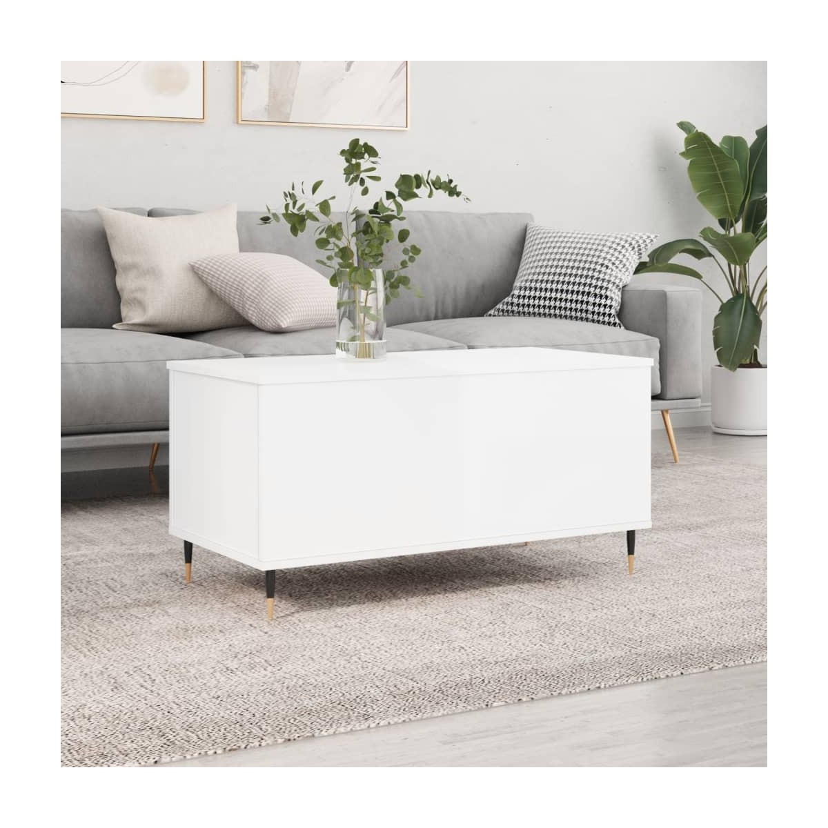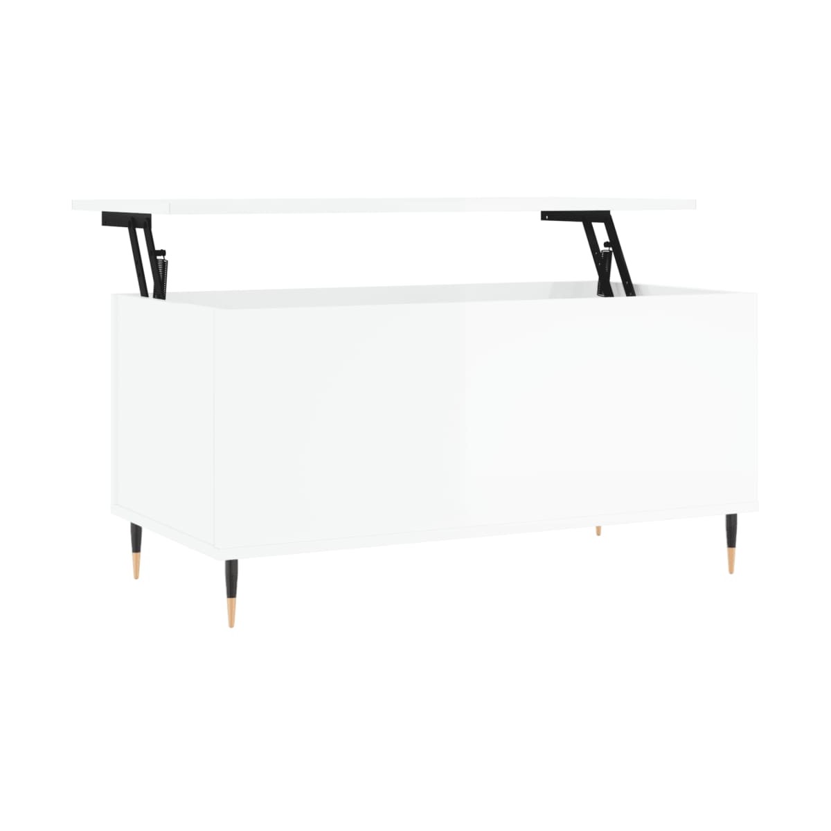 Dale un toque de elegancia a la casa con esta estilosa mesa de centro. Superficie que se levanta: La superficie de esta mesita auxiliar se puede levantar suavemente a una altura cómoda, para convertirla en un lugar para trabajar o para cenar.Material duradero: La madera contrachapada tiene una calidad excepcional, con una superficie lisa y también cuenta con fuerza, estabilidad y resistencia a la humedad. Hecha de madera tecnológica, la mesita de sofá es fácil de limpiar con un paño húmedo.Amplio espacio de almacenamiento: El almacenamiento oculto bajo la superficie ascendente facilita la organización y el acceso a libros y otros objetos, y ofrece suficiente superficie para las necesidades diarias, los aperitivos o el ordenador portátil.Patas de metal: Las patas de metal le dan un estilo moderno y tranquilo a la casa mientras garantizan su estabilidad.Mesa versátil: Con un diseño exclusivo, esta mesita de salón puede servir como mesa de comedor provisional e incluso como mesa para el ordenador, por lo que resulta una excelente inversión y aporte para cualquier espacio reducido.