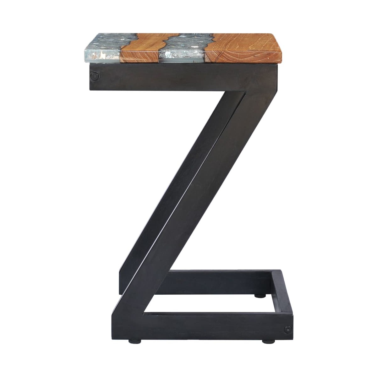Esta exclusiva mesa de centro, hecha de madera maciza de teca y mango con una decoración de poliresina transparente, desprende un encanto rústico y es todo un reclamo. Su tablero ofrece una superficie estable y segura sobre la que puedes colocar tus bebidas, jarrones, fruteros o adornos. La mesa de centro con diseño de patas en Z también puede usarse como mesa auxiliar. La superficie está totalmente hecha a mano y esta artesanía contribuye a dotarla de un lujoso aspecto. Hecho de madera dura de teca extremadamente duradera, este mueble de teca ha sido secado al horno y lijado finamente para darle una apariencia muy lisa. La madera de teca es conocida por su excepcional fortaleza y resistencia a la intemperie. La madera de teca es la elección perfecta si deseas comprar un mueble duradero. La base es de robusta madera de mango con un acabado de pintura negra. El montaje es muy sencillo. Nota importante: Como la madera es un producto natural, los colores y las vetas varían de una pieza a otra, por lo que cada una de nuestras mesas de centro es única y diferente de la otra. La entrega es aleatoria, lo que garantiza la exclusividad e individualidad del producto.