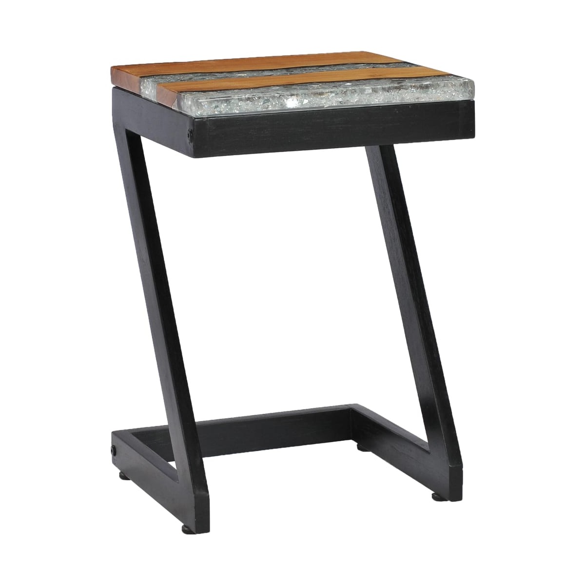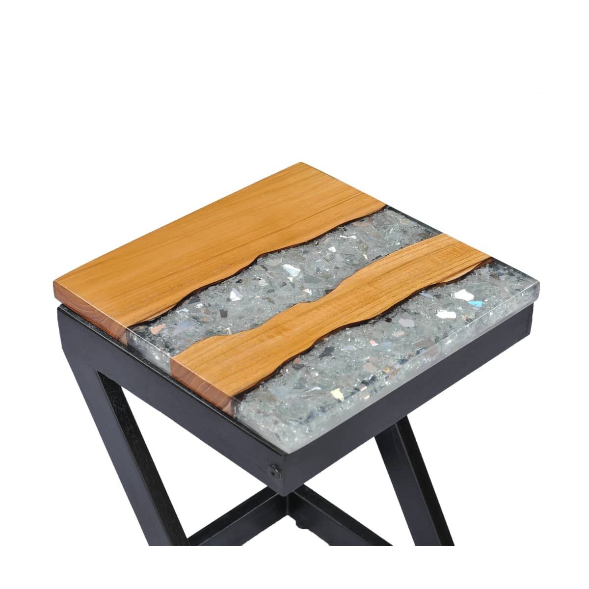 - Material: Madera maciza de teca con un acabado lacado transparente + polirresina transparente con vidrio triturado