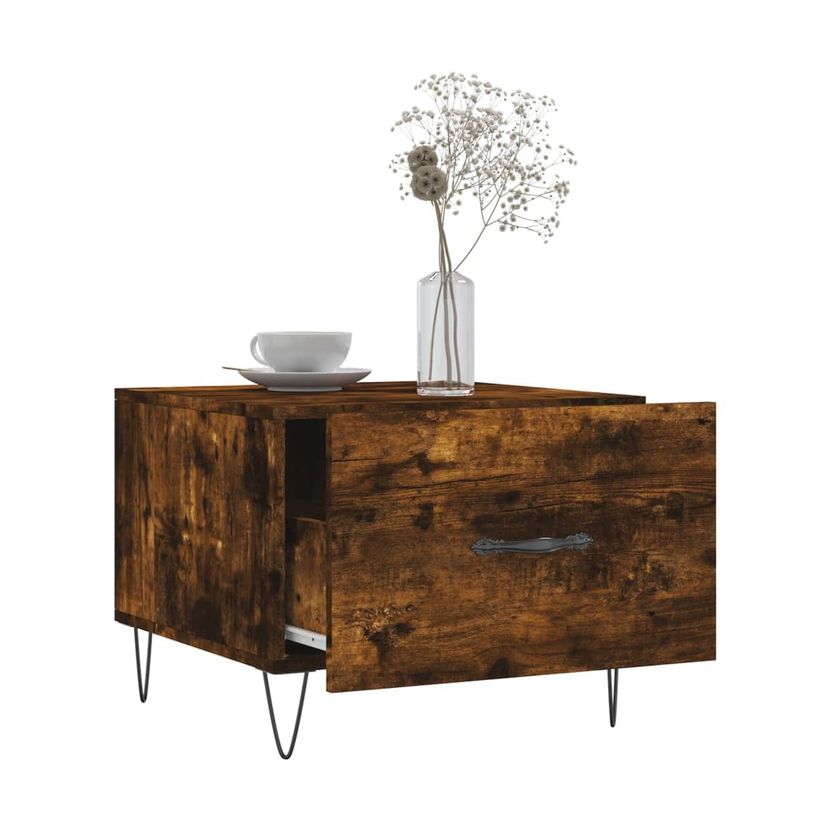 Dale un toque de elegancia a la casa con estas estilosas mesas de centro. Material duradero: La madera de ingeniería tiene una calidad excepcional, con una superficie lisa y también cuenta con fuerza, estabilidad y resistencia a la humedad.Amplio espacio de almacenaje: La mesa auxiliar tiene un cajón, que ofrece un amplio espacio de almacenaje para mantener tus cosas bien organizadas y al alcance.Superficie robusta: La robusta superficie de la mesita de sofá es perfecta para colocar bebidas, comida y otros objetos decorativos.Patas de hierro: Las patas de hierro dan un estilo tranquilo a la casa, además de garantizar la estabilidad de la mesa.